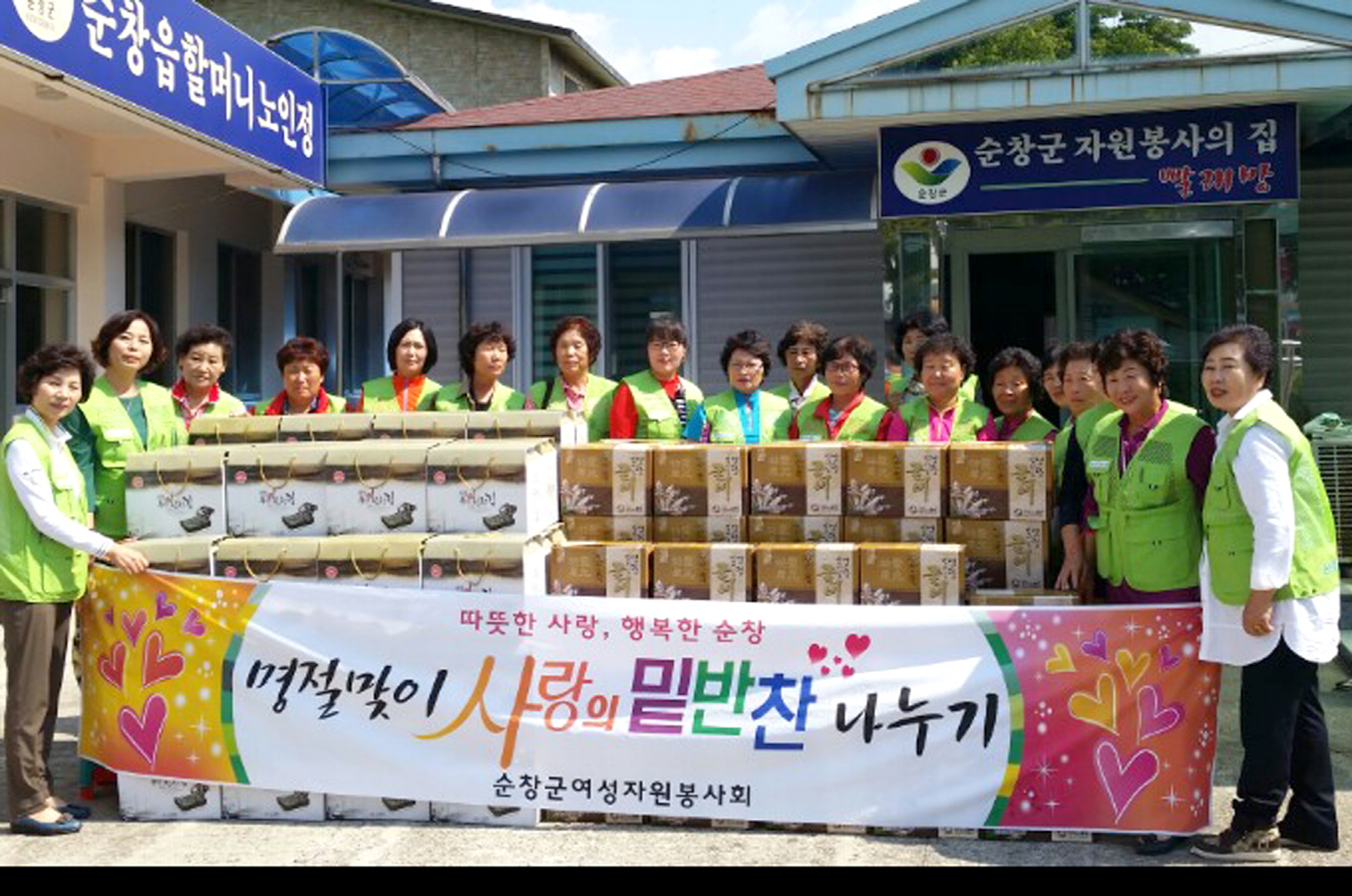 - 순창군 여성자원활동센터(회장 김영주)는 21일 추석명절을 맞아 저소득층 60세대를 방문해 세대당 굴비 한두릅과 김 선물세트를 전달 이웃사랑을 실천했다. 여성자원활동센터는 매년 명절마다 보살피는 사람 없이 쓸쓸히 지내야 하는 홀로어르신 등 소외계층에게 따뜻한 정을 나누기 위해 밑반찬 등 을 지원해 오고 있다. -2015. 9. 21-