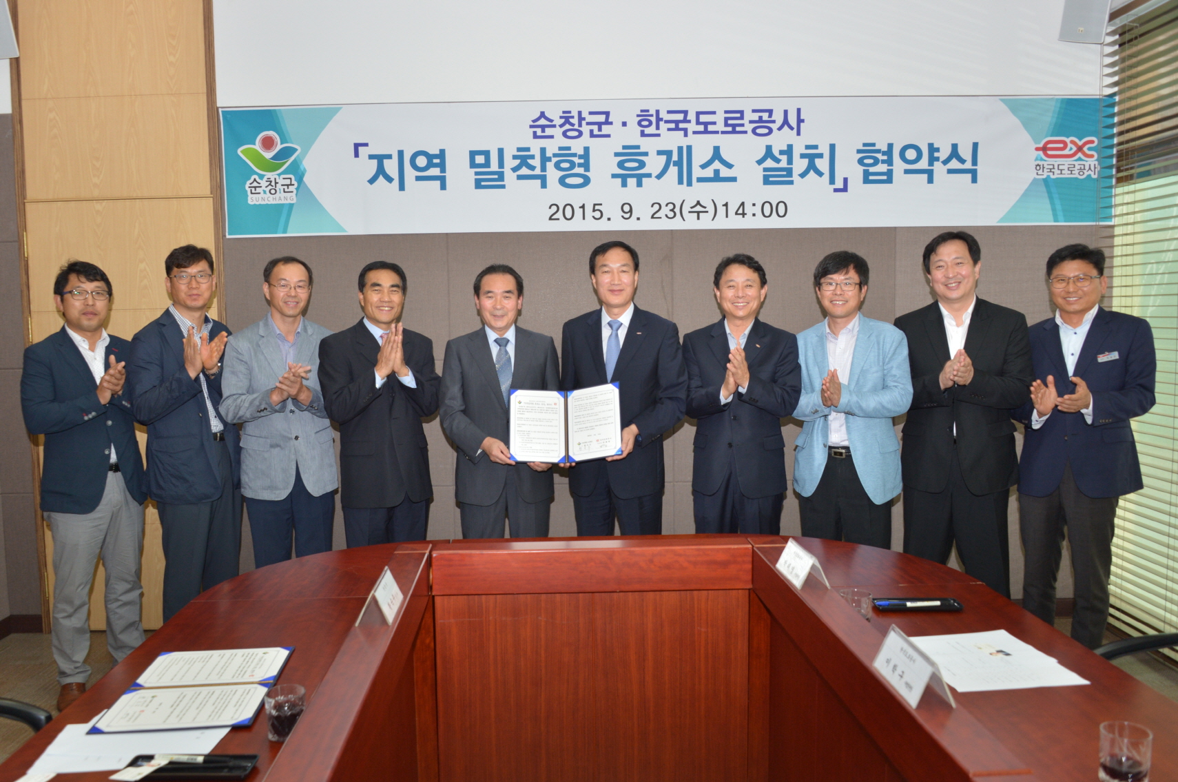 - 순창군과 한국도로공사는 23일 황숙주 군수를 비롯해 박태영 한국도로공사 도로교통부 시설처장 등 관계자 10여명이 참석한 가운데 순창장류사업소 소회의실에서 88고속도로와 순창휴게소를 연결해 상호 이익을 창출하는 지역밀착형 휴게소 설치관련 협약식을 진행했다. 이날 업무협약에 따라 순창휴게소(광주방향)와 50m 정도 떨어진 순창고추장민속마을로 내려가는 연결계단과 홍보공간 제공이 만들어 진다. -2015. 9. 22-