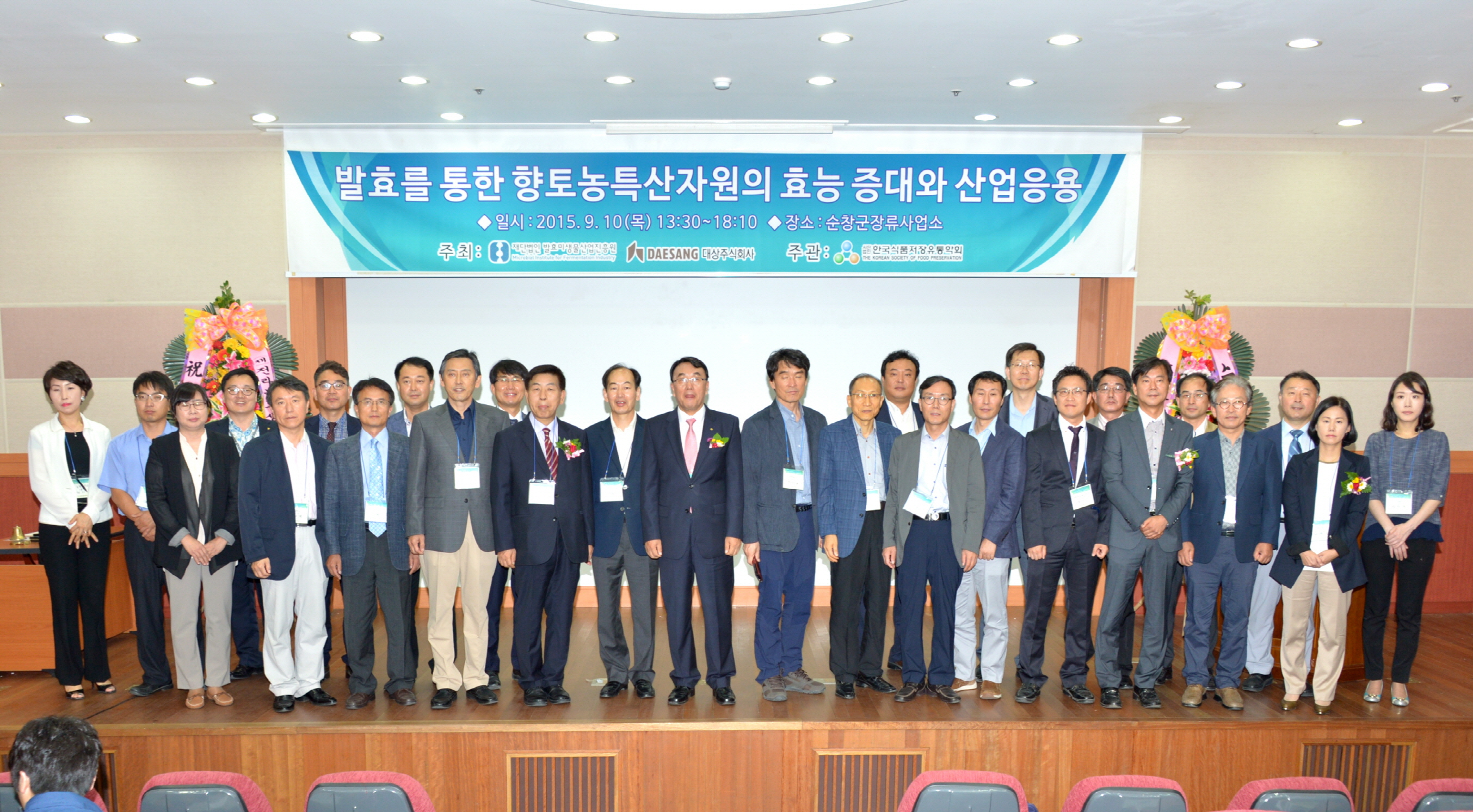 - 10일 한국식품저장유통학회 호남지부 학술대회가 순창장류사업소 세미나실에서 열렸다. 한국식품저장유통학회 호남지부와 (재)발효미생물산업진흥원이 공동 개최하는 이번 심포지엄은 한국식품저장유통학회 회장인 김경수 조선대 교수를 비롯해 호남지부장인 김영수 전북대 교수, 학회회원 등 100여명이 참석했다. 6월부터 식품분야의 각종 회의 4회 500여명을 유치하여 관광과 연계하고 일반 관광객의 2.8배 소비효과로 지역경제를 활성화 시키는 MICE(회의관광)산업 추진에 속도를 내고 있다. -2015. 9. 10-