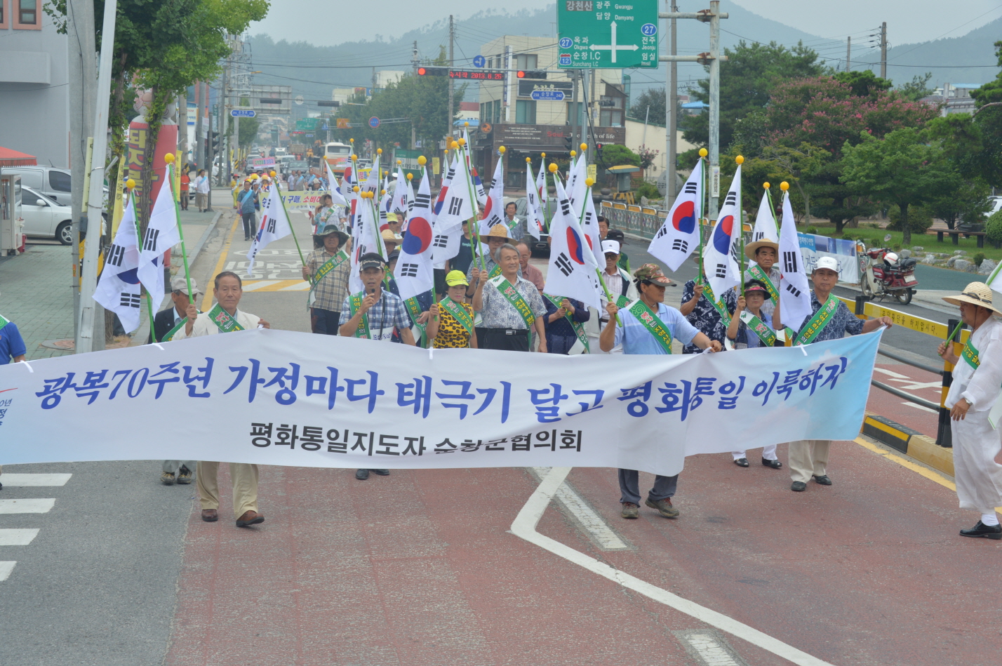 - 평화통일지도자 순창군협의회(회장 김봉호)는 광복 70주년을 맞이하여 11일 오전 9시 순창읍 재래시장에서 200여명이 참석한 가운데 홍보 전단을 배부하며 태극기 달기 운동에 적극 동참해 줄 것을 호소하며“나라사랑 태극기 달기 캠페인”을 실시하였다. -2015. 8. 11-