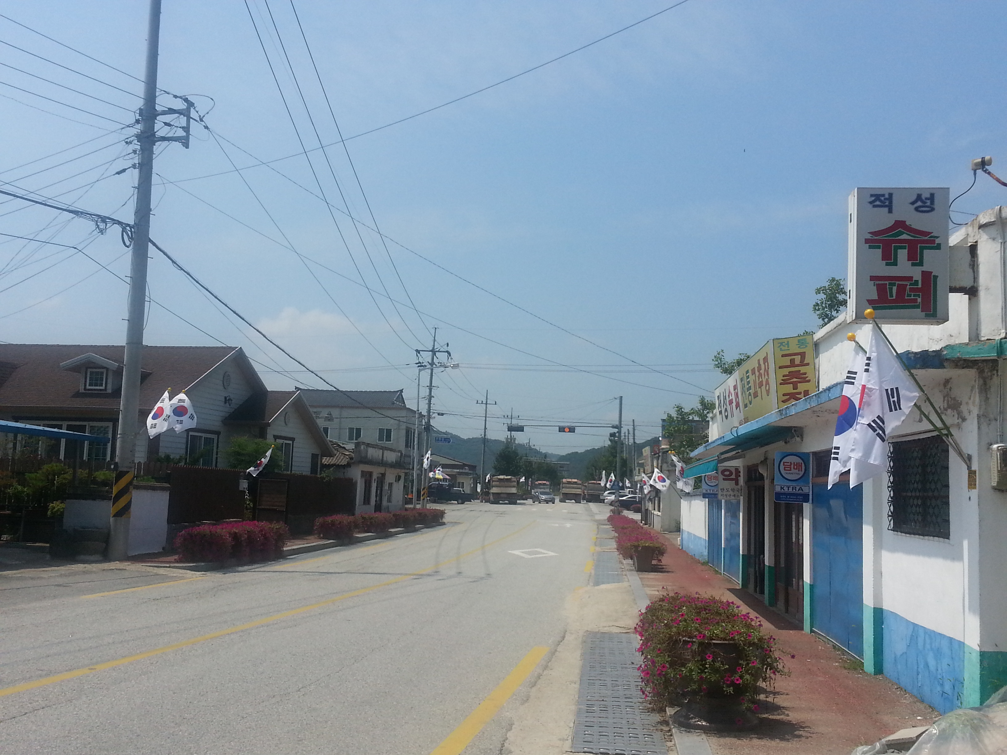 - 적성면은 13일 관평마을 소재지 도로변 1㎞ 구간에 제70주년 광복절을 맞아 나라사랑 태극기를 새로 달았다.적성면장과 직원들은 제70주년 광복절을 맞이하여 국권회복을 경축하고 태극기 달기 문화를 확산시켜 국기 게양을 통한 주민들의 나라 사랑하는 마음을 드높이기 위해 손수 기존의 가로등과 전신주에 국기 꽂이를 새로 설치하고 태극기를 게양하였다. -2015. 8. 13-