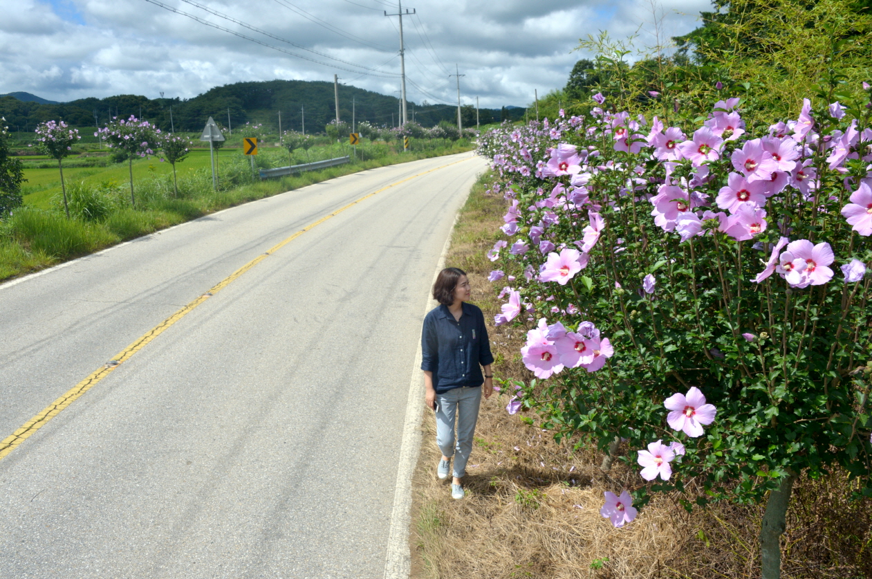 - 광복 70주년을 이틀 앞둔 13일 국도 729호선 광암로와 구인선에 활짝핀 무궁화가 장관을 이뤄 지나는 관광객들의 발길을 붙잡고 있다. 순창군은 지난 2000년부터 2003년까지 3년간에 걸쳐 팔덕면 광암마을앞에서 구림면 연산마을까지 8km거리에 1500여주의 무궁화를 심어 가로수길을 조성했다. 매년 가로수풀베기, 병충해 방제, 가지치기 등으로 지속 관리해 명품가로수길로 만들어 가고 있다. -2015. 8. 13-