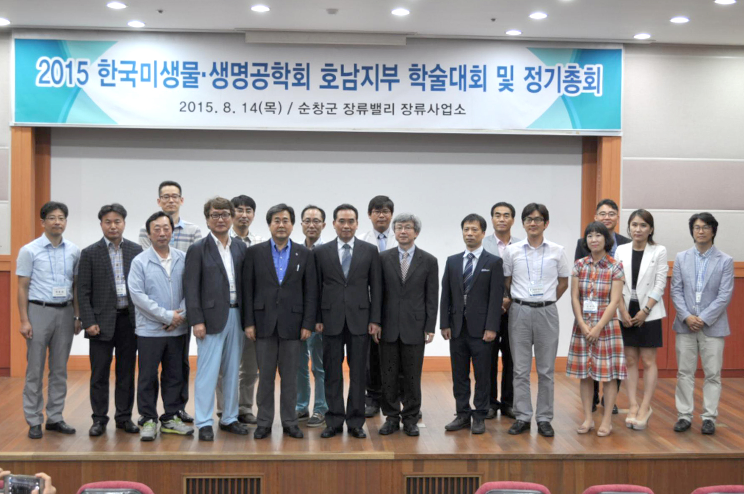 - 2015년 한국미생물·생명공학회 호남지부 학술대회 및 정기총회가 14일 순창에서 열렸다. 한국미생물·생명공학회 호남지부와 순창군이 공동 개최하는 이번 학술행사에는 황숙주 순창군수, 한국미생물· 생명공학회 회장인 정건섭 연세대 교수를 비롯해 호남지부장 윤순일 전북대 교수, 호남지부 관계자 및 대학원생 80여명이 참석했다. -2015. 8. 17-