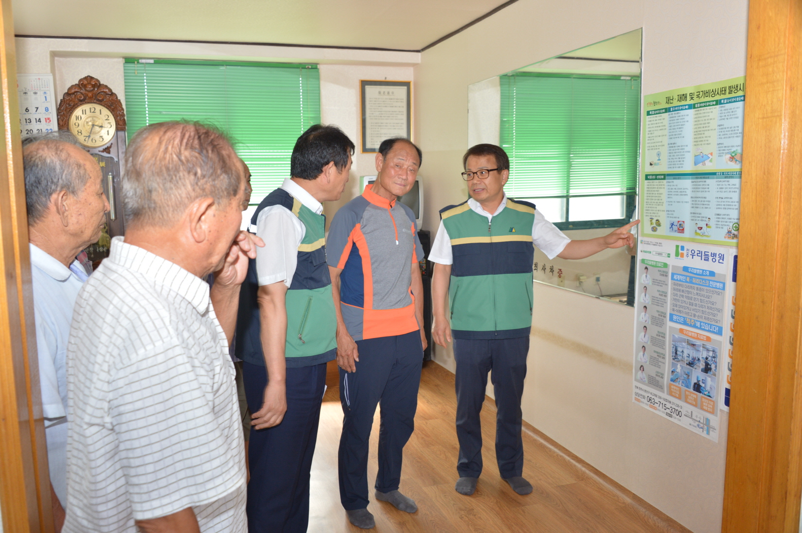 - 7일 곽승기 부군수는 옥천 1마을 무더위쉼터를 방문해 냉방시설을 살펴보며 어르신들이 무더위에 건강을 잃지 않도록 세심한 주의를 기울였다. 군은 본격적인 폭염철인 8월부터 폭염주의보, 경보발령 시 재난자동음성정보통보시스템을 활용해 272개 마을과 관광지 등에서 야외활동을 자재하고 휴식을 취할 수 있도록 하는 방송을 하루 3차례 하고, 재난문자 시스템을 통해 3,600명에게 폭염상황을 알 수 있도록 문자를 발송하고 있다. 또 관내 경로당 등 냉반시설이 잘 갖춰진 148개소를 무더위 쉼터로 지정하고 노인들이 쉴 수 있도록 운영 중이다. -2015. 8. 7-