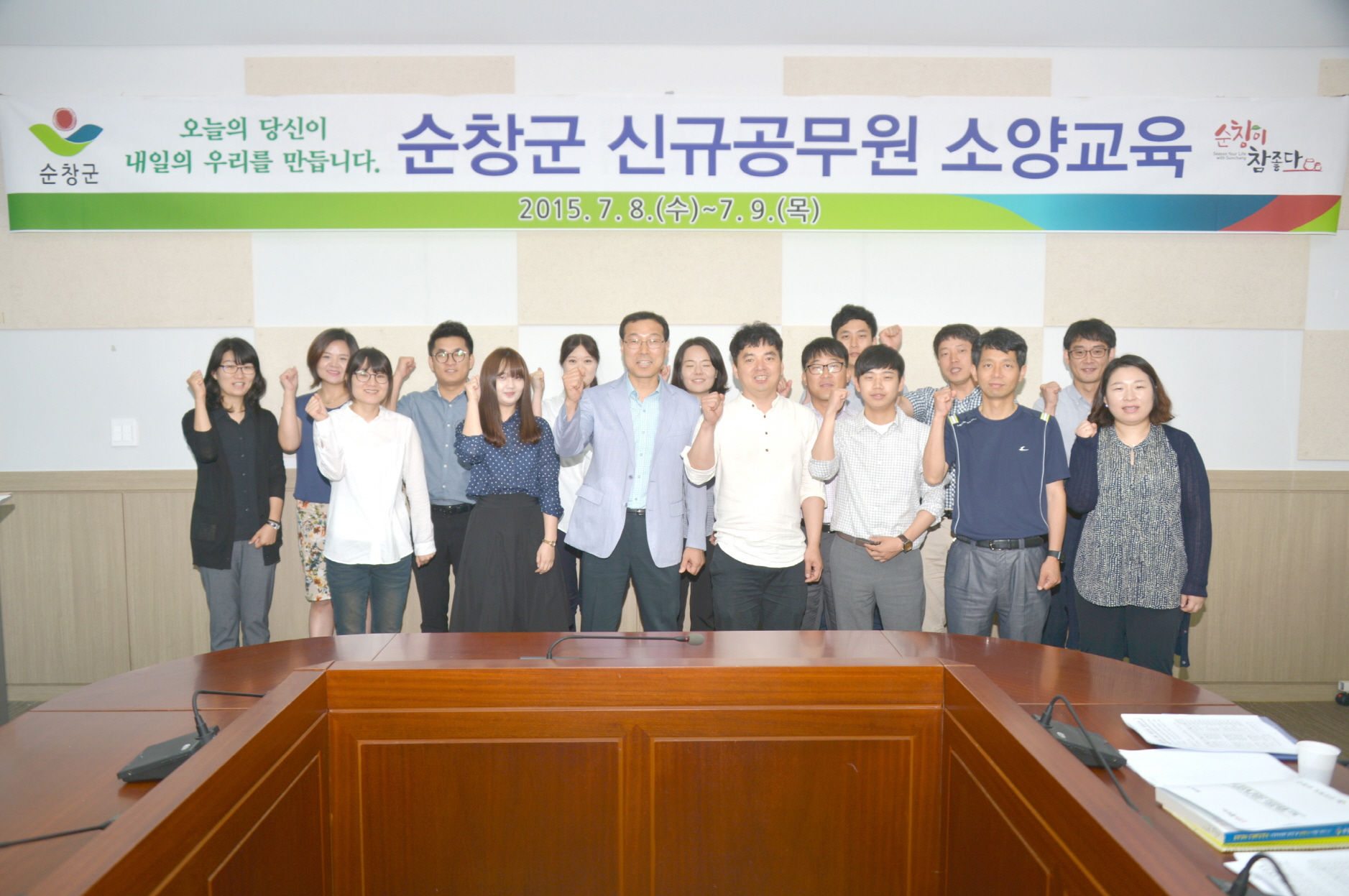 - 순창군은 신규공무원 16명을 대상으로 8일부터 9일까지 2일간 건강장수연구소에서 바람직한 공직관 등 기본부터 기획, 예산 등 실무교육까지 선배공무원이 직접 공직생활 노하우 전수와 실무능력 향상 교육을 실시했다. -2015. 7. 8-