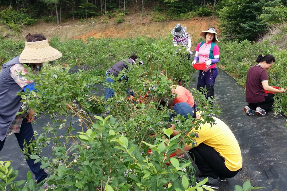 - 전북혁신도시 호반베르디움 1차아파트 부녀회(회장 송정숙)원 10여명은 27일 메르스 발생으로 농산물 수확과 판로에 어려움을 겪고 있는 순창군을 방문해 블루베리 수확 일손돕기를 진행하고 수확한 블루베리도 구매했다. -2015. 6. 28-
