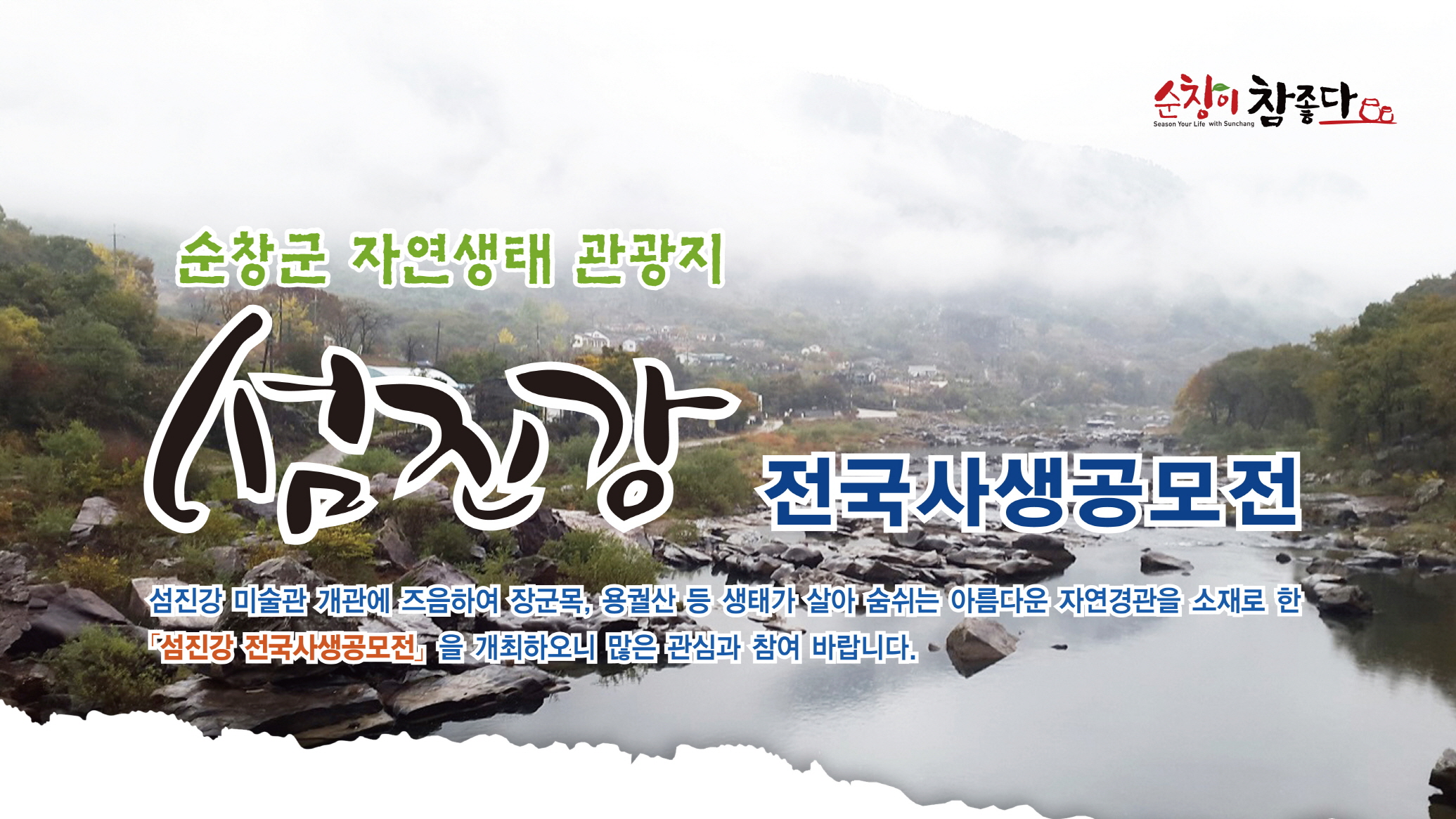 - 천혜의 비경을 간직한 섬진강의 아름다움을 예술작품으로 표현하는 섬진강 전국사생공모전을 추진한다. 작품 범위는 장군목, 용궐산, 향가유원지 등 순창군 섬진강 유역을 소재로 한 작품으로 참가대상은 전국 초중고생과 대학․일반인까지 가능하다. 1인 2작품까지 출품 가능하며, 대학·일반부 대상은 장관급 상장과 시상금 500만원, 최우수상은 지사 상장 및 상금 200만원, 우수상은 군수 상장 및 100만원의 상금을 수여한다. 특별상과 입선작에게도 소정의 상장 및 부상이 지급된다. 학생부는 대상에 도교육감 상장 및 상금 50만원, 금상에는 군수 상장 및 상금 20만원, 은상에는 군수 상장 및 상금 10만원, 동상에는 의장상 및 부상을 지급한다. -2015. 7. 6-
