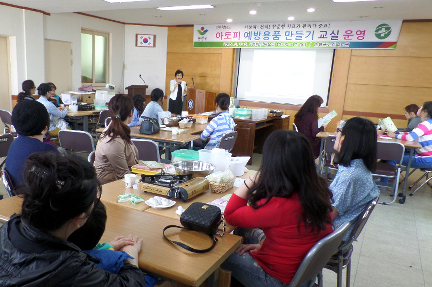 - 순창군이 아토피 환자나 가족을 위해 천연재료를 이용한 아토피케어용품 만들기 교실을 운영하고 있다. 7일부터 28일까지 총 4회 매주 목요일에 순창보건의료원 3층 회의실에서 아토피피부염 환아 보호자 35명을 대상으로 천연재료를 이용한 아토피 케어용품 만들기를 진행한다. 자세한 사항은 순창군보건의료원 예방의약계(650-5213)로 문의하면 된다. -2015. 5. 14-