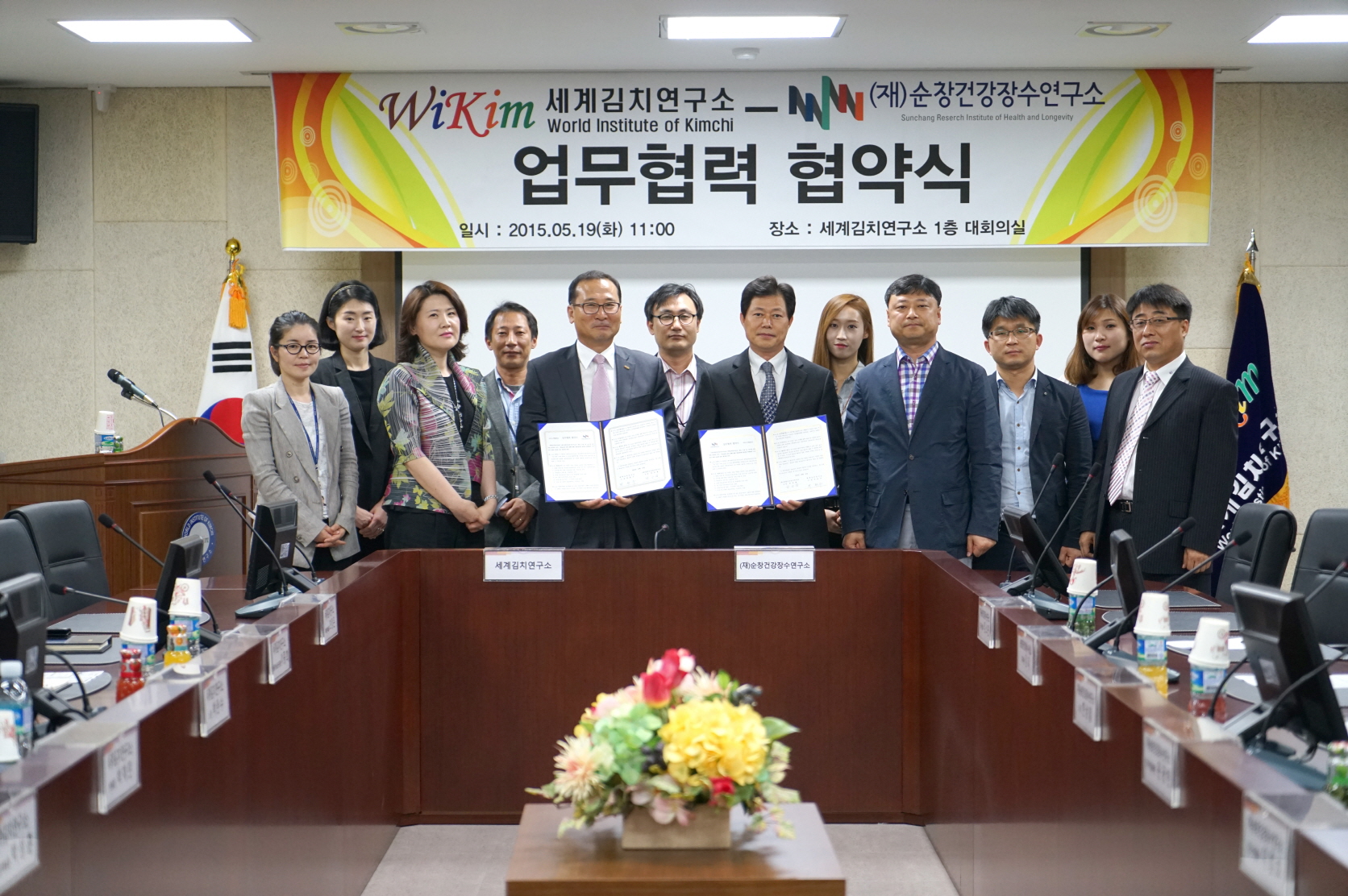 - 순창건강장수연구소(소장 한상철)는 19일 세계김치연구소와 발효식품 및 농식품 6차 산업분야에 공동노력을 주 내용으로 하는 업무협약을 체결했다. 협약체결의 주요내용은 ▲건강장수식품분야의 공동 연구 및 기술개발 참여, ▲농식품 6차 산업 프로그램 공동 개발 및 운영 ▲학술정보 교류 및 기술개발 자문 ▲공동 관심분야의 세미나 및 학술대회 공동 개최 ▲ 양 기관 인적자원의 상호교류 ▲ 보유시설 및 장비·기자재의 공동 활용 등의 분야에서 상호 협력 등이다. -2015. 5. 19-