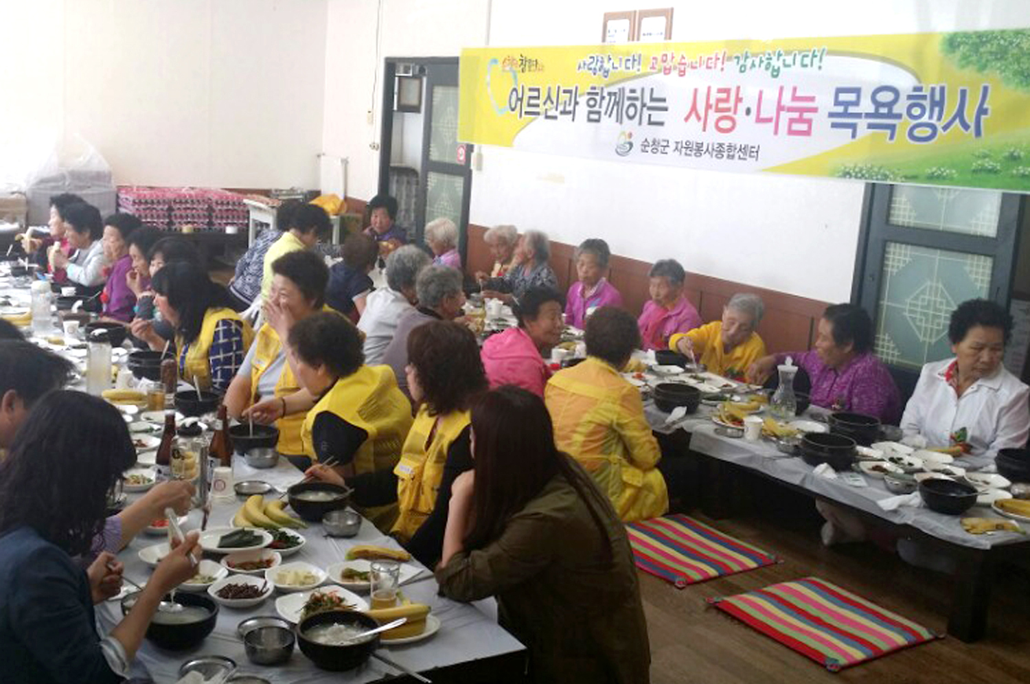 - 순창군자원봉사센터(소장 임금순)가 5월 가정의 달을 맞아 관내 어르신 30여명을 모시고 7일 실로암목욕탕에서‘어르신과 함께하는 사랑․나눔 목욕봉사’활동을 펼쳤다. -2015. 5. 7-