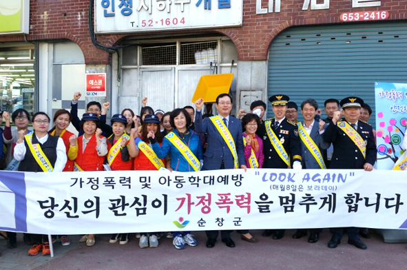 - 순창군 아동․여성안전지역연대에서는 8일 버스터미널 주면에서 가정폭력 및 아동학대 예방과 안전한 지역사회 환경 조성을 위한 캠페인을 실시했다. 캠페인에는 순창군과 경찰서, 교육지원청, 119안전센터, 다문화가족지원센터, 여성단체협의회, 사회복지협의회 등 관내 유관기관 단체 회원 30여명이 참여했다. -2015. 5. 8-