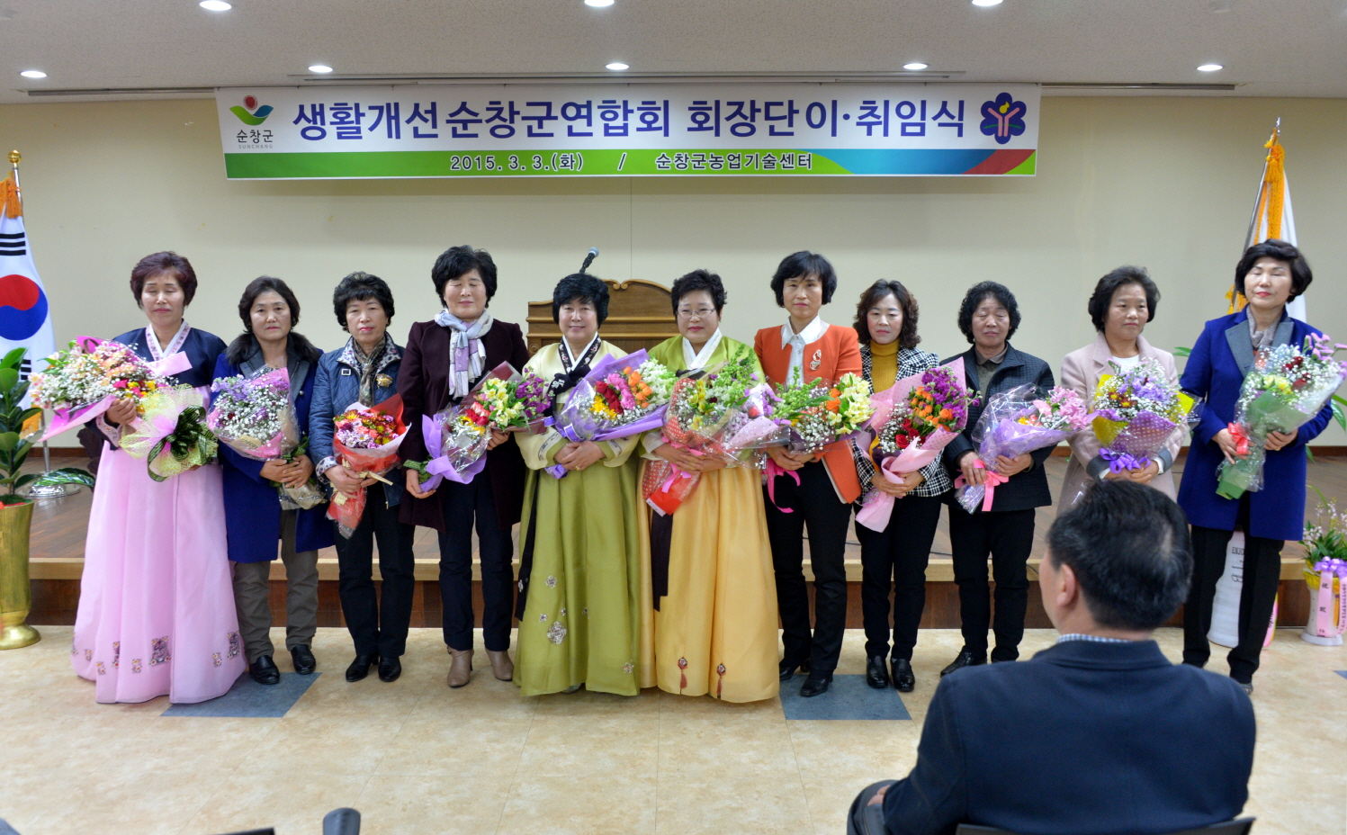 - 3일 생활개선순창군연합회 이·취임식이 농업기술센터 3층 회의실에서 황숙주 군수, 이기자 군의회 의장을 비롯한 내외귀빈과 생활개선연합회원 등 100여명이 참석한 가운데 열렸다. 이날 2013년부터 2014년까지 2년 동안 군 생활개선회를 이끌었던 왕봉덕 회장의 이임식과 김미옥 신임회장 취임식에 이어 읍면에서 퇴임한 진숙희 회장 등 6명에게 공로패를 수여하는 시간도 가졌다. -2015. 03. 03-