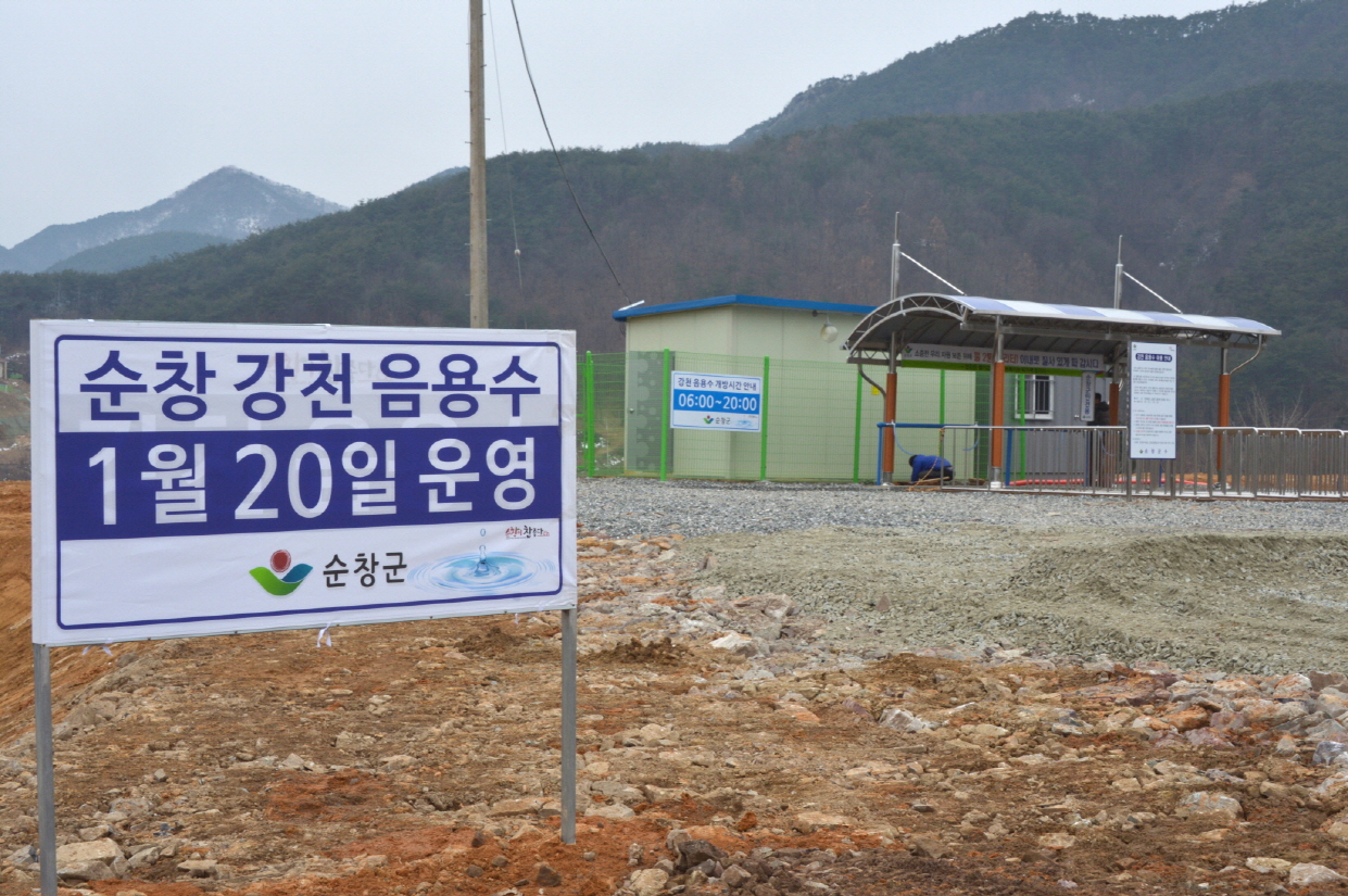 - 한국의 좋은 물로 전국적으로 유명세를 타고 있는 강천 음용온천수가 1월 20일부터 공급한다. 음용수 개방시간은 아침 6시부터 저녁 8시까지 하루 14시간 운영한다. 운영시간대에 관리인을 상주시켜 무분별한 취수로 인한 물 낭비를 방지하고 지역자원을 보호하기 위해 한 사람당 취수할 수 있는 양을 40리터로 제한할 방침이다. -2015. 01. 15-
