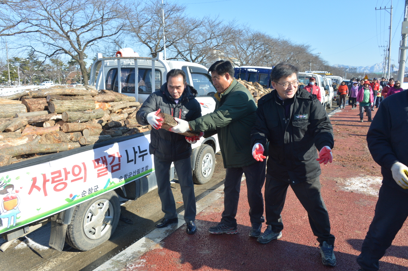 - 순창군이 동절기 난방문제로 어려움을 겪고있는 가구에 땔감을 무상공급하는 ‘사랑의 땔감 나눠주기’ 행사가 열렸다. 이번 땔감 나누기 행사는 순창군과 순창군산림조합이 공동으로 추진하며 읍․면장의 추천을 받아 독거노인이나 소년소녀가장, 기초생활수급자 등 저소득 취약계층과 사회복지시설 등에 우선적으로 지원하게 되는데 20가구에 60톤을 공급한다. -2014. 12. 19-