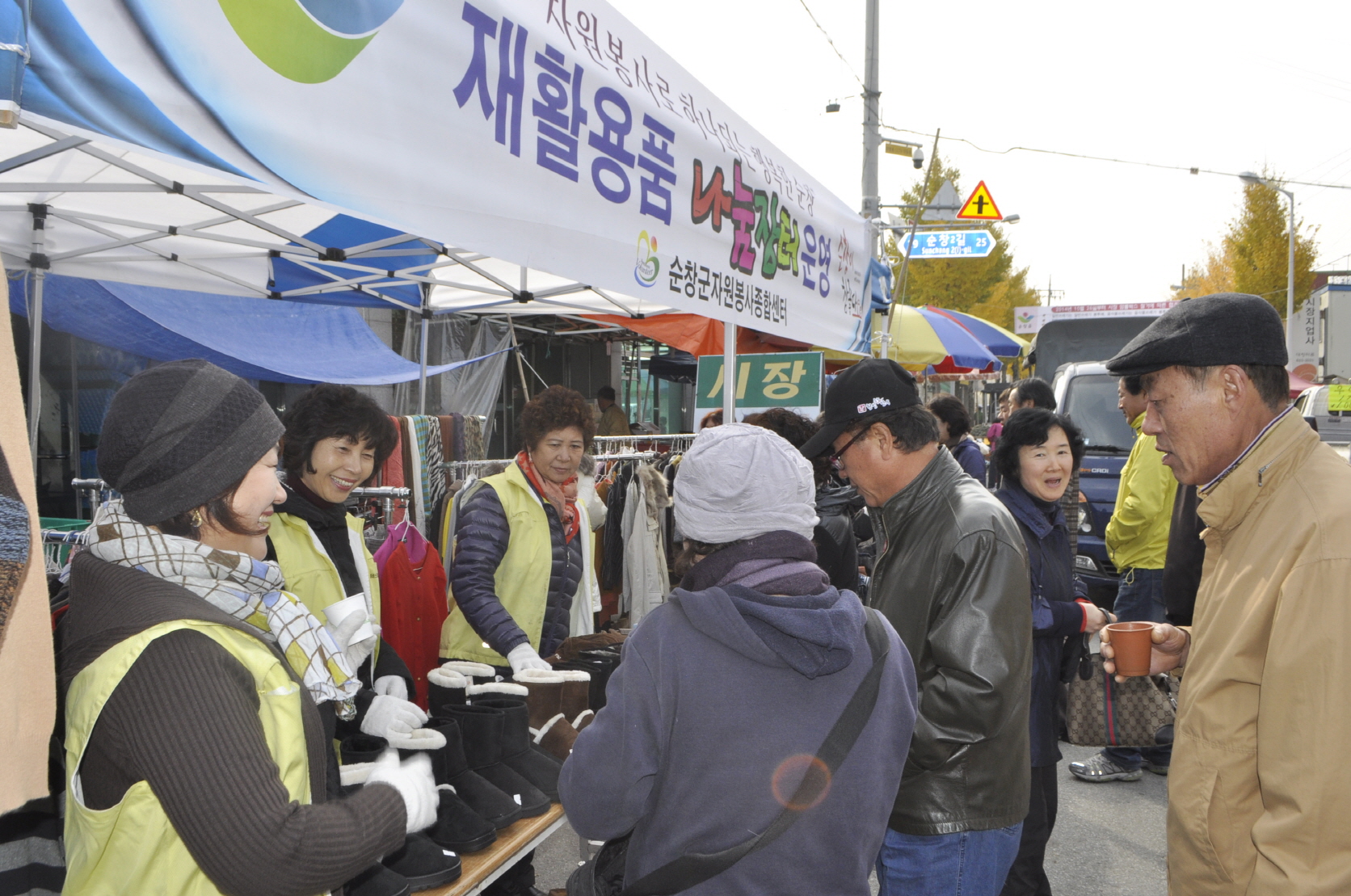 - 순창군자원봉사종합센터(소장 임금순)는 11일 순창읍 재래시장에서 자원봉사자 15명과 함께 가정 내 활용하지 않는 재활용가능 물품 옷, 책, 생활용품 등 2,000여점으로 소외되고 어려운 이웃에게 저렴한 가격으로 판매하는 나눔장터를 운영했다. -2014. 11. 11-