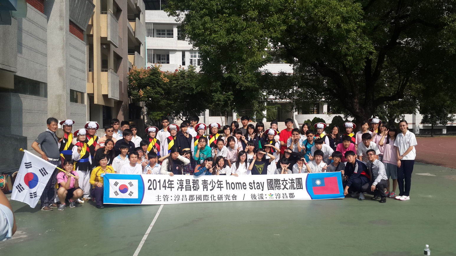 - 순창국제화연구회 홈스테이 방문단 17명과 순창국악원 동우회 농악단 등 30여명이 최근 대만 카오슝시에서 국경을 넘는 따뜻한 우의를 다지며 우리문화를 알리는 뜻깊은 상호교류의 시간을 가졌다. 순창국제화연구회 홈스테이단(단장 채종회)은 지난 2일부터 7일까지 6일간의 일정으로 대만 남부에 있는 까오숑시 국제한인학교와 남제국민중학교에서 학교학습체험과 각 호스트 가족간 체험을 하며 소중한 추억을 함께했다. 또한 순창국악원 동우회 농악단(단장 박정열) 회원 12명도 지난 5일 대만 카오슝시 국제한인학교와 남제국민중학교에서 우리민속놀이인 농악과, 판굿, 설장고, 사물놀이를 공연하며 우리문화를 국제적으로 널리 알리는 시간을 가졌다. -2014. 11. 10-