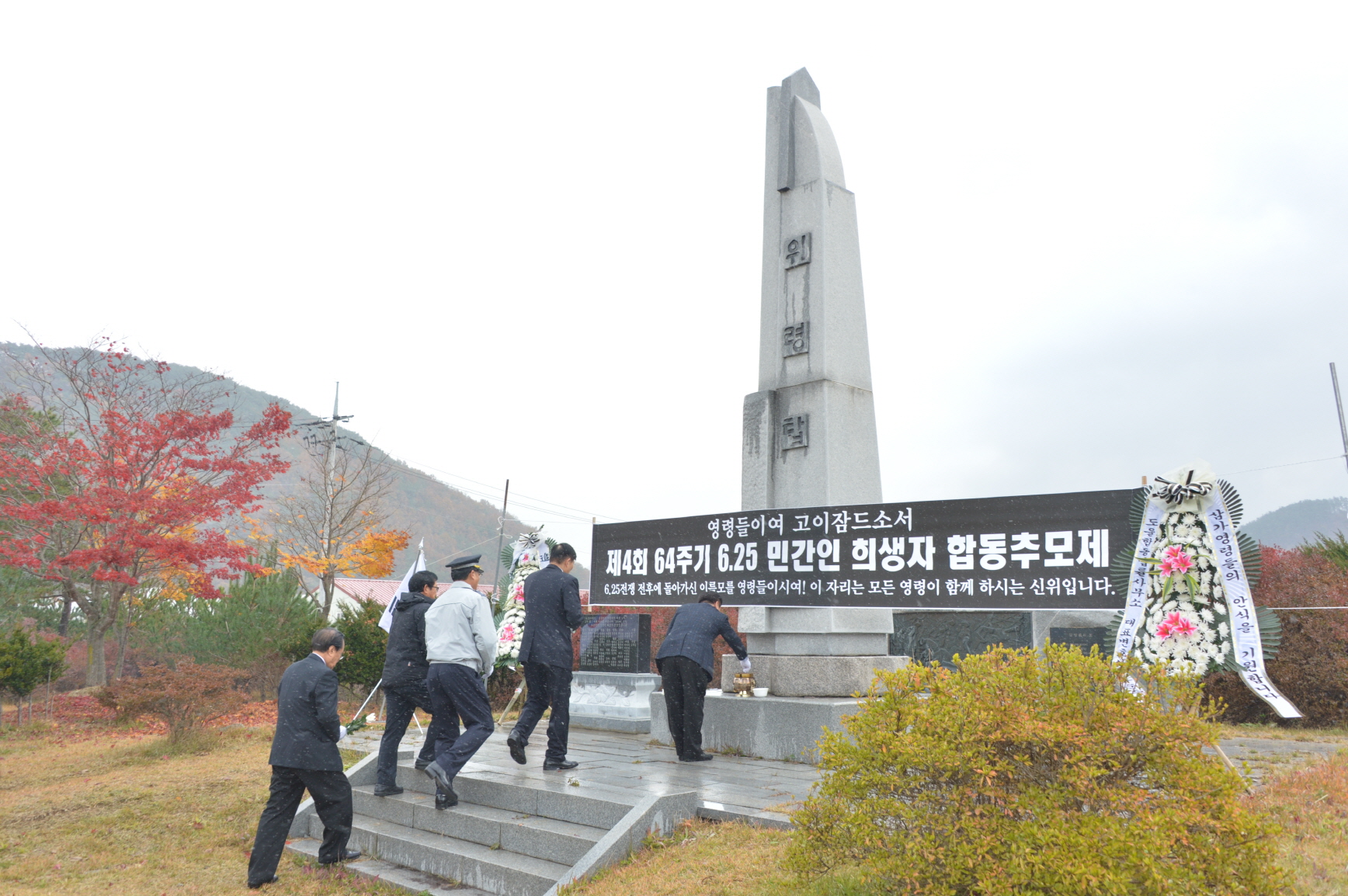 - 6.25 한국전쟁 전후로 집단 학살당한 민간인 희생자를 위로하는‘6.25 한국전쟁 민간인 희생자 합동 위령제’가 13일 쌍치면 위령탑에서 황숙주 군수, 이기자 군의장 및 희생자 유족과 주민 등 100여명이 참석한 가운데 열렸다. -2014. 11. 13-