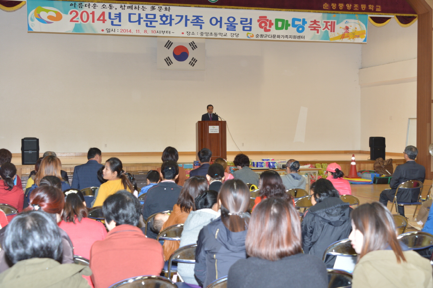 - 다문화가족 어울림 한마당 행사가 8일 중앙초등학교에서 황숙주 순창군수와 이기자 군의회 의장 등 내외귀빈과 다문화가족 등 500여명의 다문화가족이 참석한 가운데 성대하게 진행됐다. 이날 행사는 순창군과 다문화가족지원센터가 다문화가족들과 지역사회와의 소통의 장과 다문화 가족간의 유대강화를 위해 마련됐다. -2014. 11. 10-