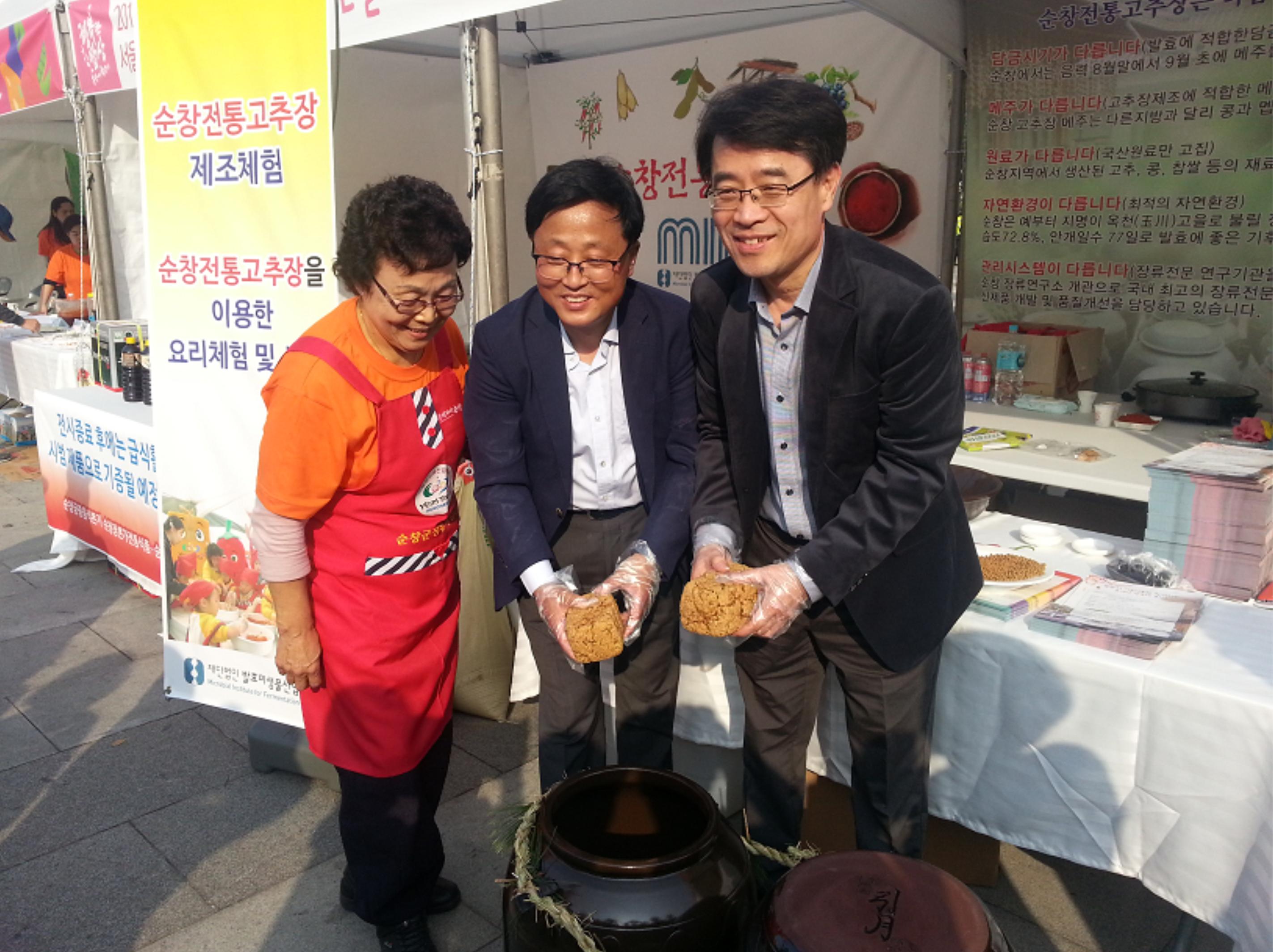 - 순창군은 최근 서울시 친환경급식센터에서 주최한 서울시 친환경급식 한마당에 참가해 순창전통장의 우수성을 홍보하고 체험활동을 진행해 참여자들의 큰 호응을 받았다. 이날 행사는 서울시의 친환경 무상급식 3주년을 기념하기 위해 광화문 광장에서 ‘행복한 밥상, 농장에서 학교까지’라는 주제로 다양한 친환경 급식 제품을 전시하고 직접 체험하는 형식으로 진행됐다. -2014. 10. 27-