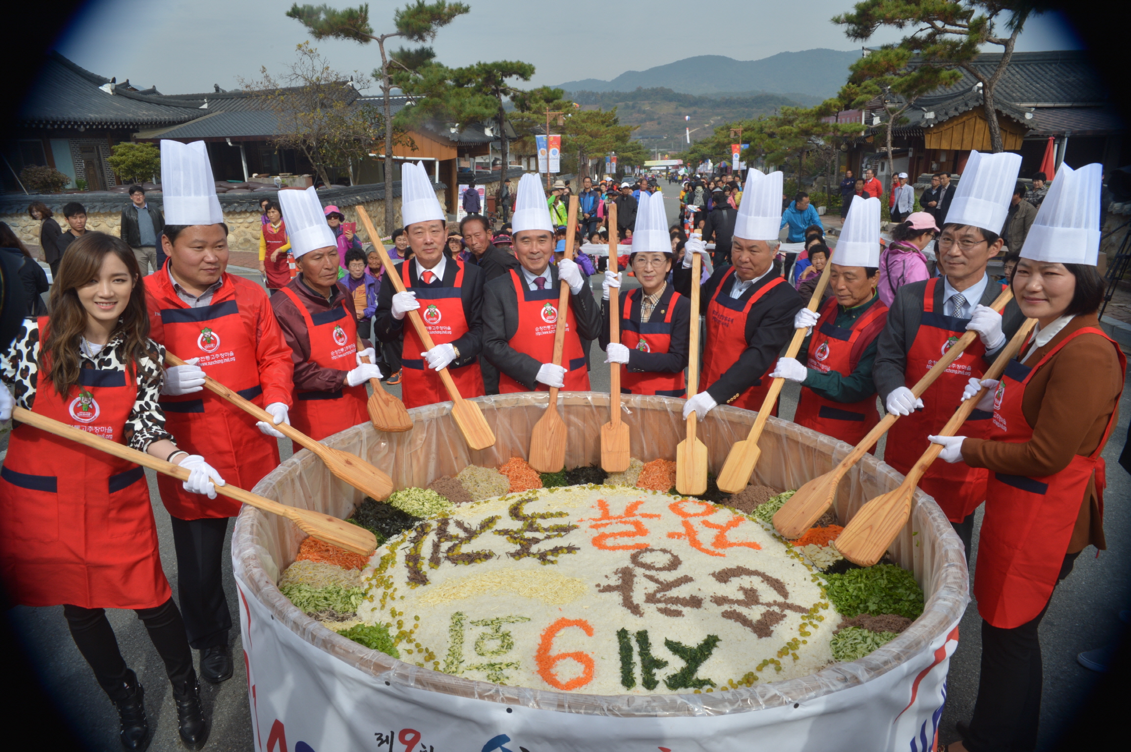 - 30일 순창장류축제가 한창인 순창전통고추장 민속마을 특설무대에서 황숙주 순창군수, 이기자 군의회의장을 비롯 이남 순창장류축제추진위원장, 마을주민 관광객 등이 참석한 가운데 순창전통고추장으로 만든 2014인분 웰빙 비빔밥을 만들어 축제장을 찾은 관광객들과 함께 나눴다. 이날 순창전통고추장민속마을 주민들이 순창고추장의 우수성을 널리 알리고자 정성을 모아 만든 비빔밥은 대형 가마솥에 사골국물로 만든 밥에 콩나물, 참기름, 버섯, 마늘, 무생채, 애호박, 도라지, 상추 등 각종나물과 양념을 넣고 정성을 모아 순창전통고추장과 함께 고루 비볐다. -2014. 10. 30-