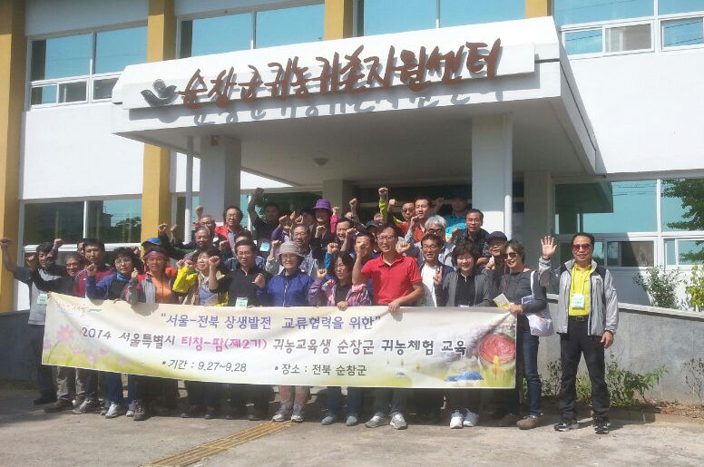 - 순창군에서 실시하는 2014년 수도권 귀농학교가 예비 귀농귀촌인들의 마음을 사로잡고 있다. 순창군은 27일에서 28일 동안 실시한 수도권 귀농학교에 50명의 예비 귀농귀촌인들이 수료했다. 이번에 실시한 귀농인 교육은 서울시 농업기술센터와 협력하여 실시했으며 순창의 귀농정책, 생태건축교육, 유기농미나리재배, 블루베리 농장방문, 농산물직판장 견학, 귀농인 사례발표와 귀농인 선배의 주제별 대화 등의 프로그램으로 진행됐다. -2014. 9. 29-