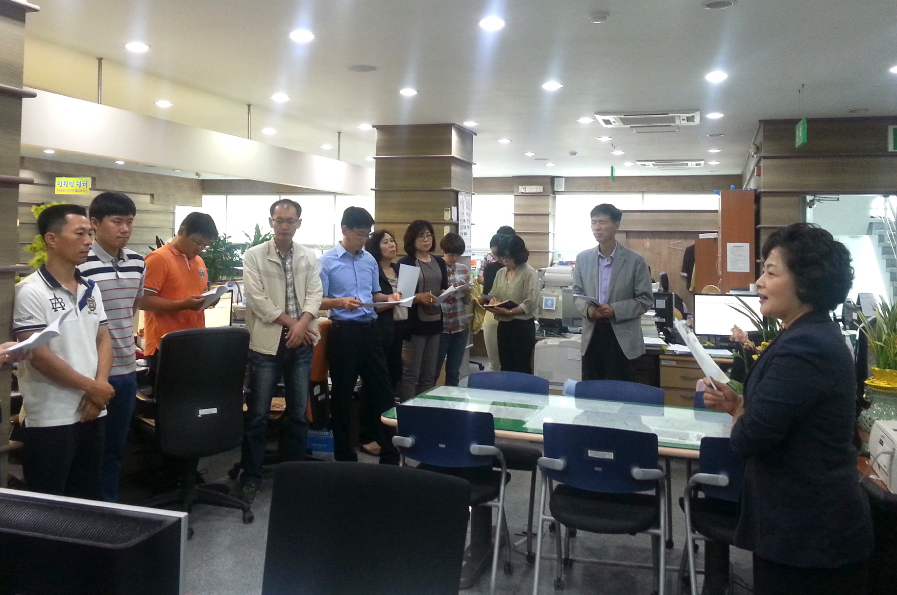 - 9월 부터 매주 민원과 직원을 대상으로 군민중심의 맞춤형 민원행정서비스 구현을 위한 공무원 친절교육을 하고 있다. 웃는얼굴, 바른인사, 고운말씨를 슬로건으로 내건 이번 교육은 항상 민원인을 응대하는 민원과 직원들이 자신을 군의 대표얼굴로 인식하고 민원인을 따뜻하게 맞이하고 기분좋게 돌아갈 수 있게 만들 수 있도록 민원인 접견과 응대요령을 몸에 익히기 위해서 마련됐다. -2014. 9. 22-