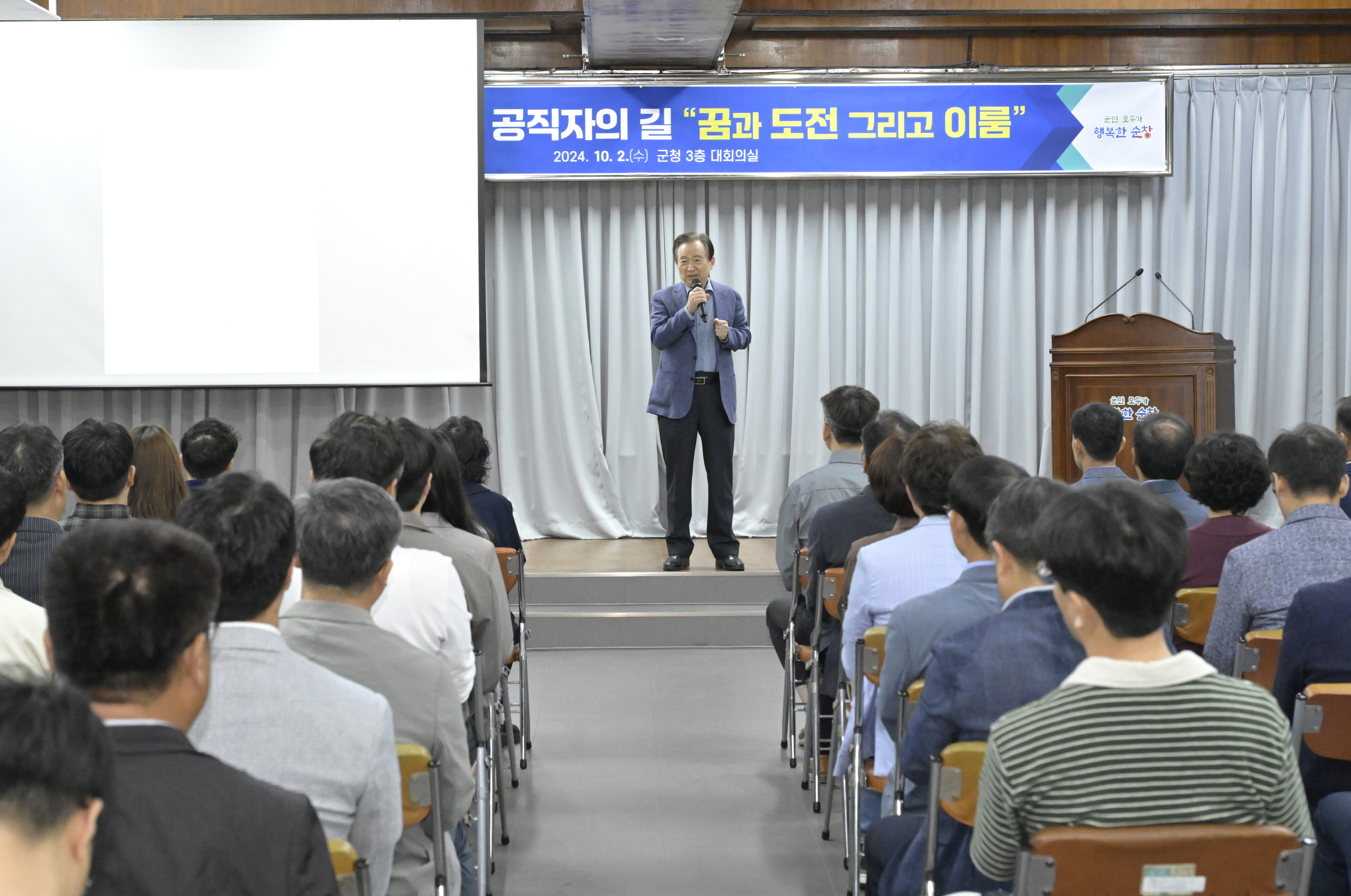 - 강운태 광주과학기술원 명예석좌교수가 2일 순창군청 3층 대회의실에서 순창군 공무원 250여명을 만나‘공직자의 길’이라는 주제로 특강을 펼쳤다. 이날 강연은 최영일 순창군수의 초청에 따라 이뤄졌으며, 오랜 공직 경험과 전문성을 갖춘 강운태 교수의 공직 노하우를 공유하고자 마련됐다. -2024년 10월 2일-