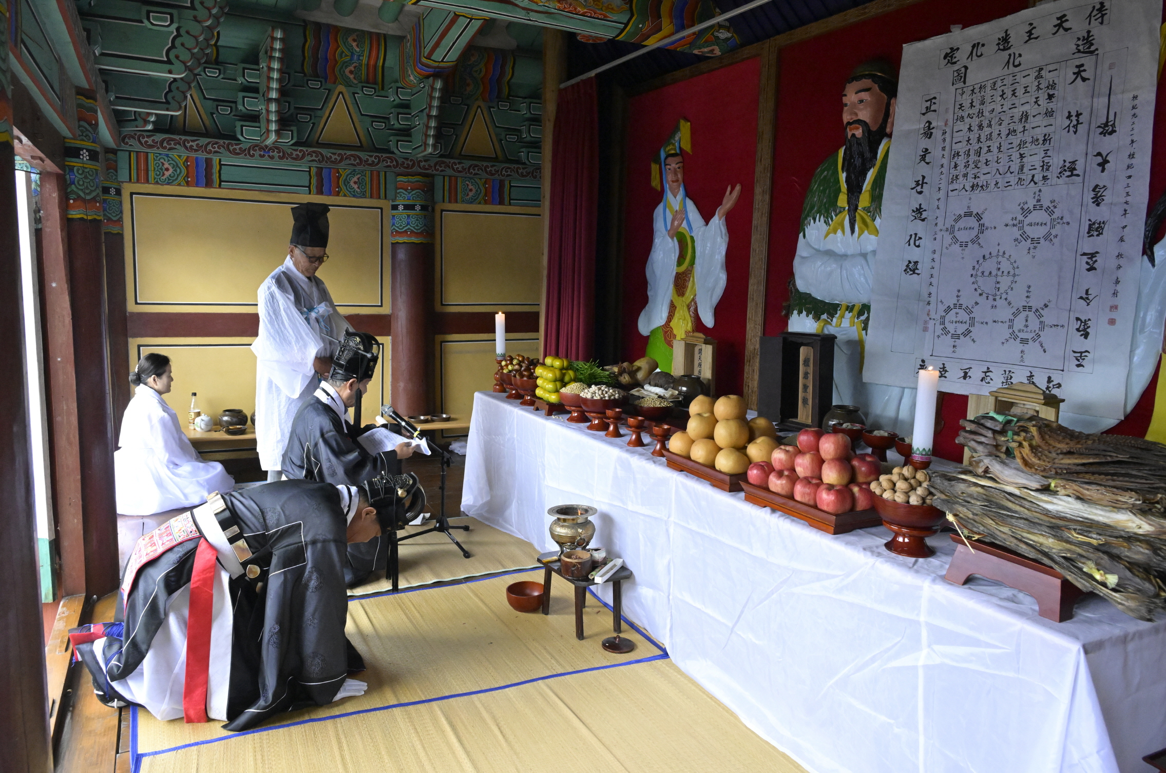 - 단기 4356주년 개천절을 맞아 순창군에서 거행된 단군대제가 지역 주민들의 관심 속에 성대하게 치러졌다. 3일 순창읍 교성리 단성전에서 열린 이번 행사는 우리 민족의 뿌리를 되새기고 화합의 정신을 고취하는 뜻깊은 자리였다. 이날 단군대제는 초헌관이 단군천황ㆍ환인천황ㆍ환웅천황 신위(神位)에 첫 술잔을 올리고, 대축이 축문을 읽는 초헌례, 두 번째 술잔을 올리는 의식인 아헌례, 세 번째 술잔을 올리는 종헌례, 초헌관ㆍ아헌관ㆍ종헌관이 각각 음복잔을 마시는 음복수조례 순으로 진행됐다. -2024년 10월 3일-