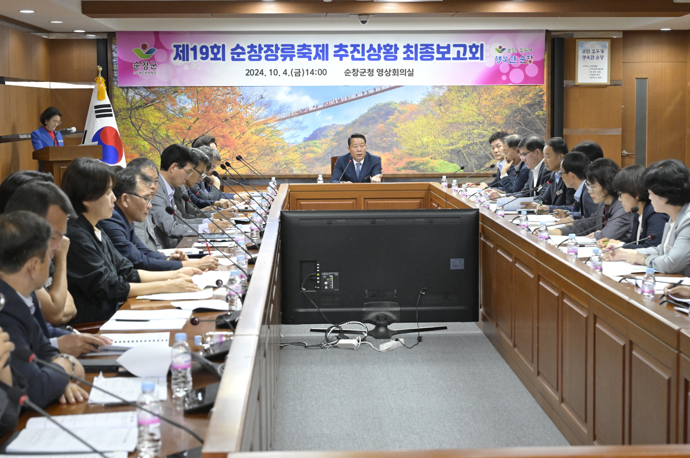 - 10월 11일부터 13일까지 3일간 순창고추장민속마을과 발효테마파크 일원에서 펼쳐질‘제19회 순창장류축제’의 성공적 개최를 위한 막바지 점검에 나섰다. 4일 군청 영상회의실에서 열린 최종 추진상황 보고회를 주재했으며, 각 실과 부서장, 읍면장들이 참석한 가운데 축제 준비 상황을 면밀히 점검했다. -2024년 10월 4일-