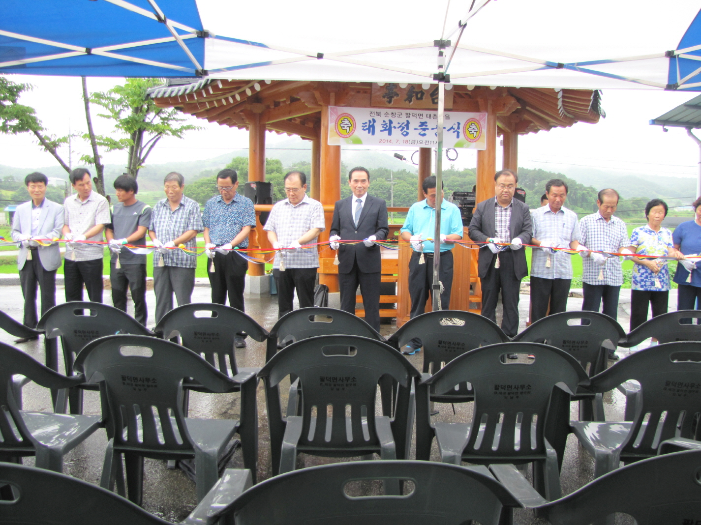 - 팔덕 태촌마을 주민들의 오랜 숙원사업이었던 모정 준공식이 18일 순창군수를 비롯한 기관단체장 및 마을주민 50여명이 참석한 가운데 열렸다. 태촌 모정은 3천만원이 투입되어 올해 5월에 착공하여 이달에 준공됐다. -2014. 07. 18-