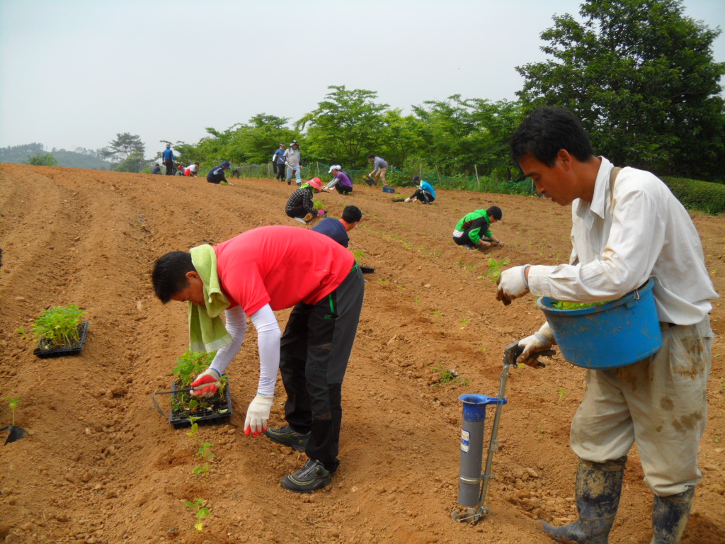 - 순창군 풍산면(면장 설제훈)은 10일 군청 담당실과인 지역경제과, 체육공원사업소 직원 등 30여명과 함께 일손이 부족한 농가를 방문해 일손돕기를 하면서 구슬땀을 흘렸다. 28℃를 넘나드는 무더운 날씨에 실시된 이날 작업은 풍산면 송두마을 귀농자 조장익(47) 농장에서 참깨이식(1,650㎡), 고구마순 놓기(1,350㎡)등 총3,000㎡에 대해 실시되었다. -2014. 6. 11-