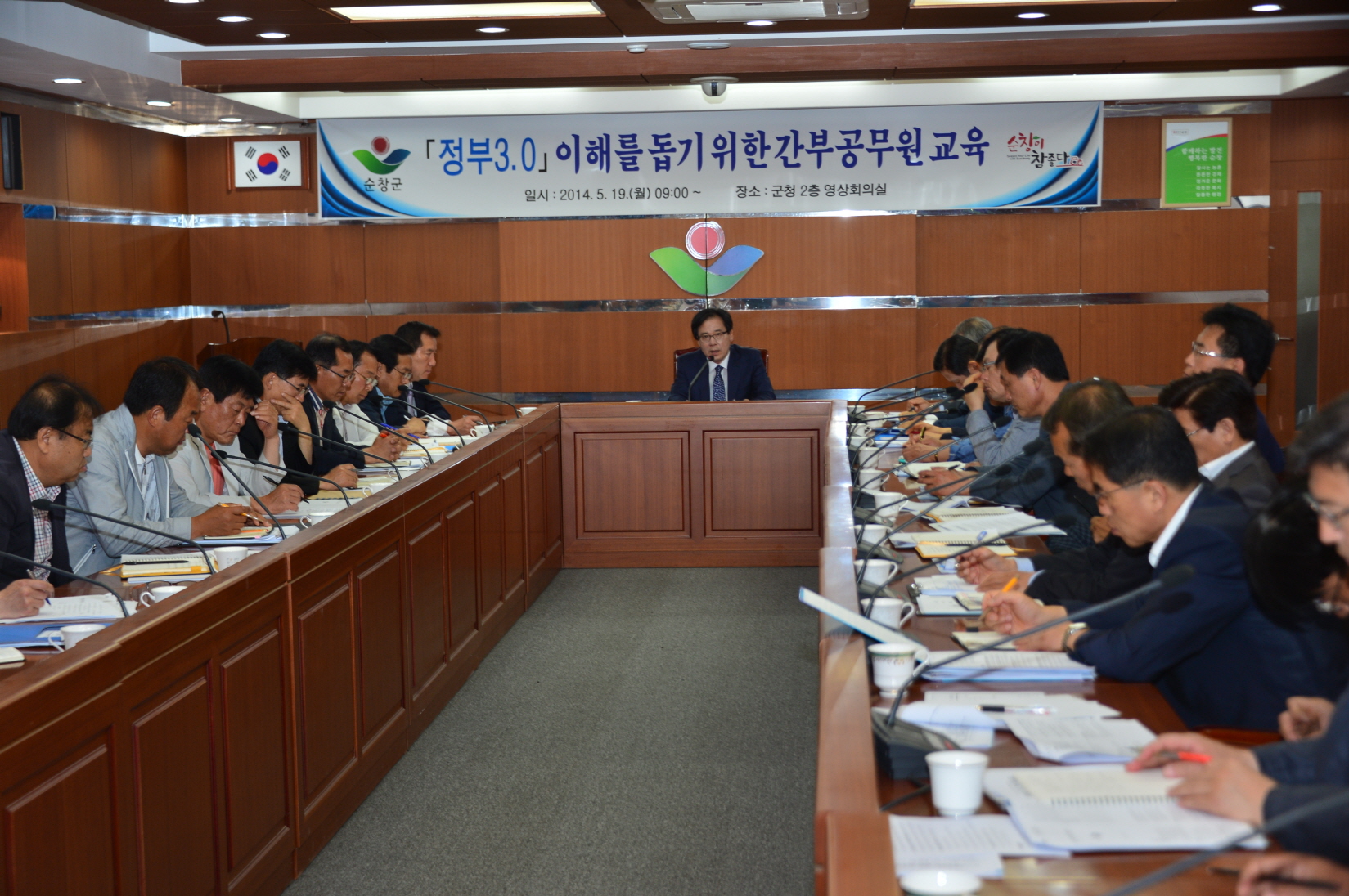 - 19일 현 정부의 핵심 국정과제인 『정부3.0』의 본격추진을 위해 이강오 순창군수 권한대행 주재로 열린 확대간부회의에서 실과소원장, 읍면장을 대상으로 순창군 3대 전략 10대과제를 세부 실천목표로 정하고 수요자 중심의 행정을 적극적으로 펼쳐나가 줄 것을 당부했다. -2014. 5. 19-