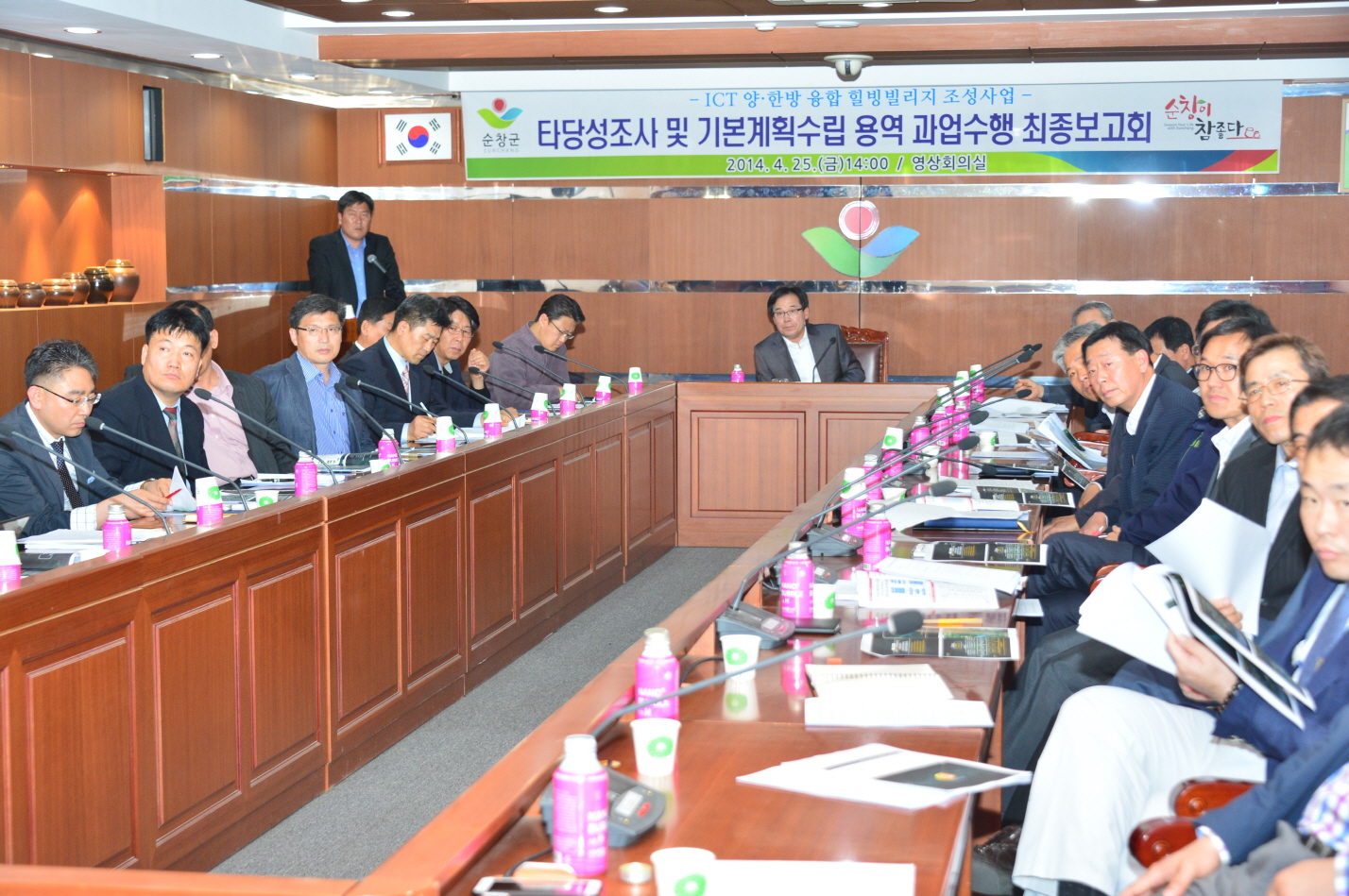 - 순창군이 힐링산업거점 조성사업의 기반 마련을 위한 25일 군청 영상회의실에서 교수 및 전문가, 관계공무원 등 40여명이 참석한 가운데 ‘ICT 양한방 힐빙빌리지 조성사업 기본계획수립 용역 최종보고회’를 가졌다. 이번 최종보고회는 지난해 11월 26일 추진보고회와 지난 2월 13일 중간보고회에 이어 개최된 것으로, 순창의 다양한 자원과 의료, 식품, 문화, 관광, ICT(정보통신기술)가 융합된 힐링거점 조성사업 실현을 위한 객관적인 검토와 분석을 통한 추진전략을 위해 마련됐다. -2014. 4. 25-