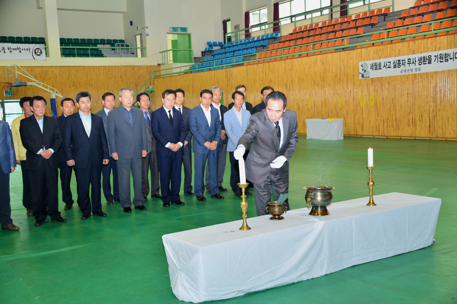- 25일 순창 실내체육관에 세월호 침몰사고 희생자를 추모하는 합동분향소를 설치했다. 황숙주 군수와 실과 소원장들도 희생자를 추모하고 유가족을 위로하기 위해 합동분양소를 찾아 헌화와 분향, 소원지, 노란리본을 달며 조문을 하였다. 순창군은 세월호 침몰 희생자 추모와 실종자 무사귀환을 바라는 애도 분위기에 동참하고자 개최 예정인 국사봉 철쭉제 행사를 취소하고 각종 소규모 행사 등을 취소하거나 연기했다. -2014. 4. 25-