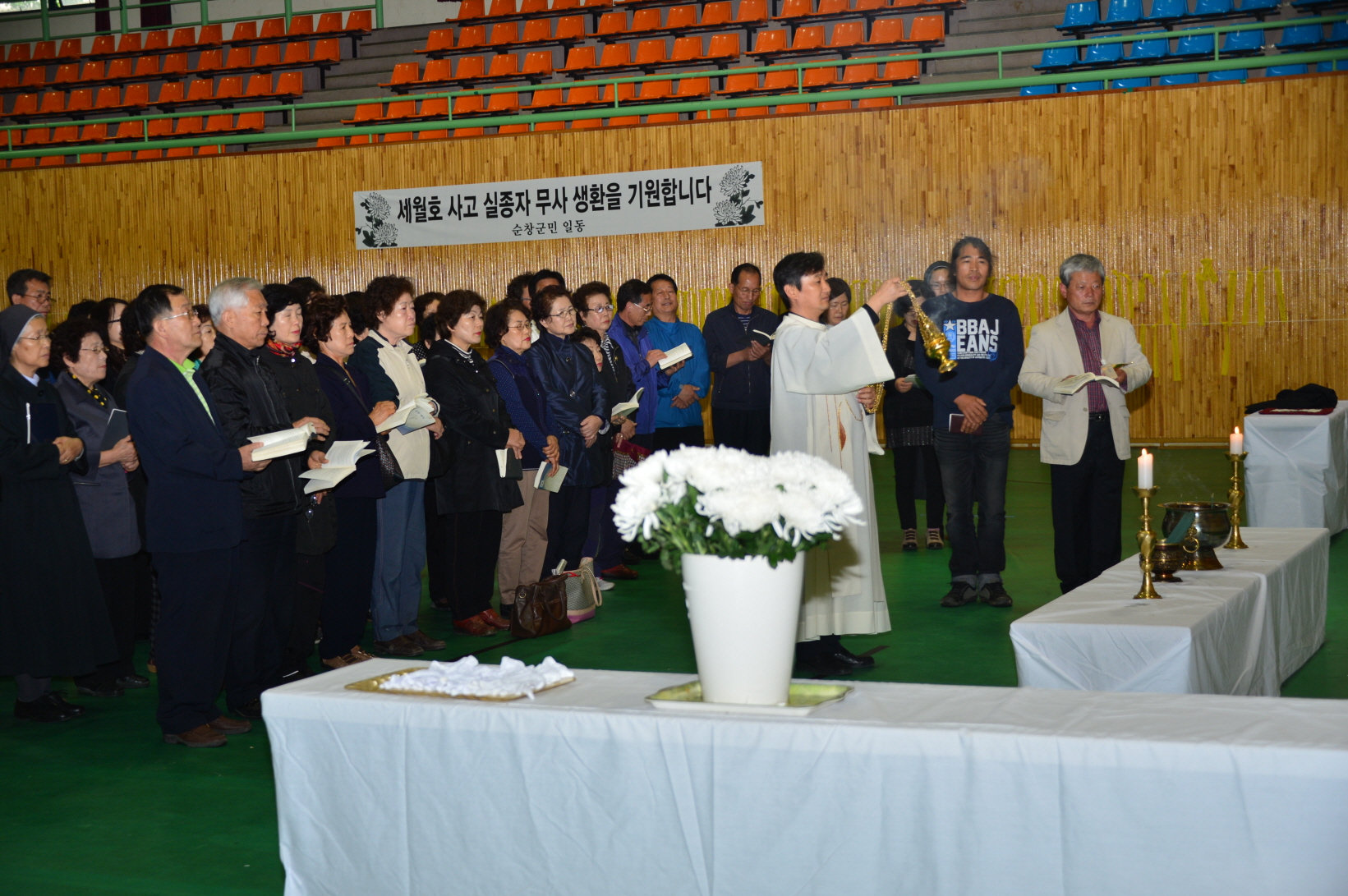 - 27일 순창군 합동분양소를 찾은 순창성당에서도 깊은 애도를 표하며 세월호 참사 희생자들을 위한 미사를 봉헌 했다. -2014. 4. 28-