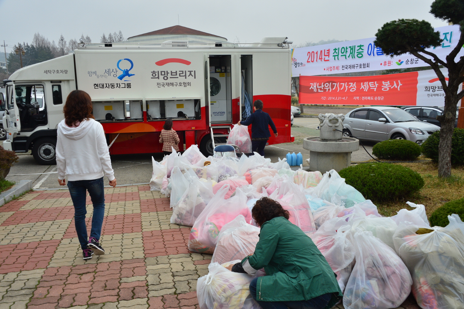 - 순창군이 독거노인 등 취약계층을 대상으로 ‘찾아가는 겨울이불 세탁사업’을 펼쳐 큰 호응을 얻고 있다. 순창군은 거동이 불편한 독거노인의 이불세탁을 돕기 위해 「희망브리지 전국재해구호협회」에 적극적으로 요청한 결과 올해 취약계층 1200세대의 세탁사업에 선정되었다. 이번 이동세탁은 세탁과 휴대가 불편한 이불을 세탁기, 건조기 등이 탑재된 8톤차량을 관내 11개 전읍면으로 투입해 차 안에서 이불세탁과 건조까지 마치게 됨으로써 한층 편리하게 이용할 수 있도록 했다. -2014. 4. 1-
