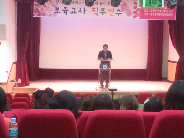 - 순창지역 어린이집 직원대상 직무교육이 최근 순창군청소년센터에서 15개 어린이집 원장과 어린이집 교직원 등 120여명의 보육교직원들이 참석한 가운데 열렸다. 순창군 보육시설연합회(회장 서양원) 주관으로 열린 이번 교육은 어린이집 교직원의 교육을 통해 교직원의 자질향상과 보육환경개선으로 보육의 질을 높이기 위해 추진됐다. -2014. 4. 2-
