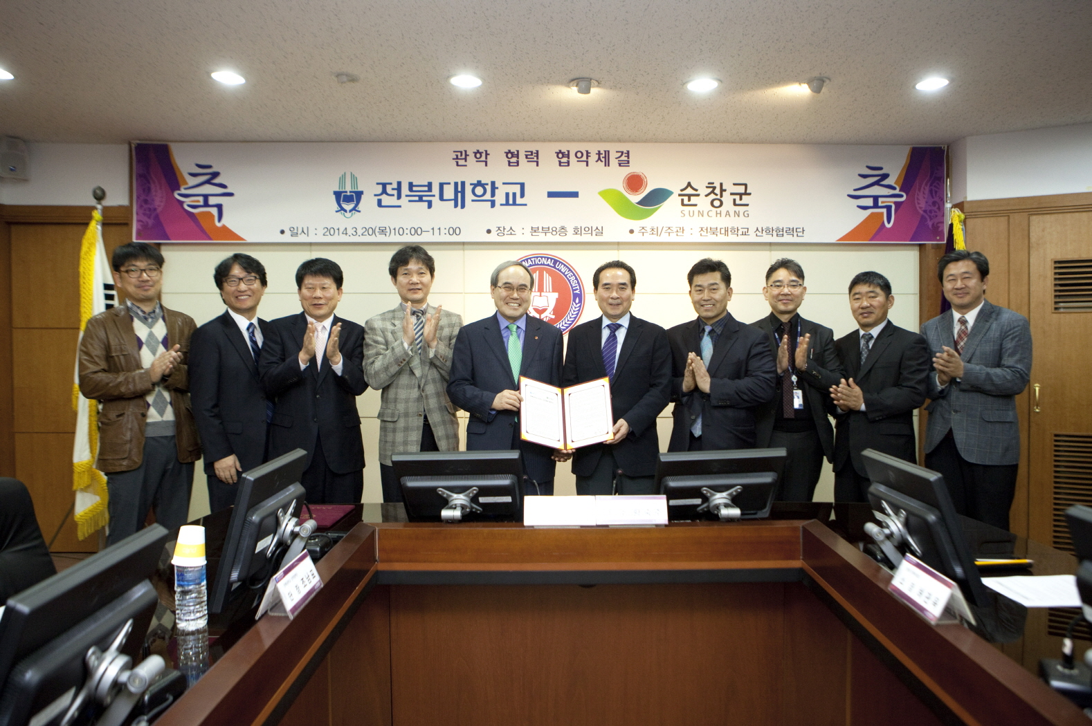 - 순창군과 전북대학교(총장 서거석)는 20일 전북대학교 산학협력단실에서 건강.친환경 발효미생물 산업육성을 위한 협약을 체결했다. 이날 협약을 통해 전북대학교는 순창군에 발효미생물 거점센터인 전북대 RIC 분소를 설치하여 운영키로 했다. -2014. 3. 20-