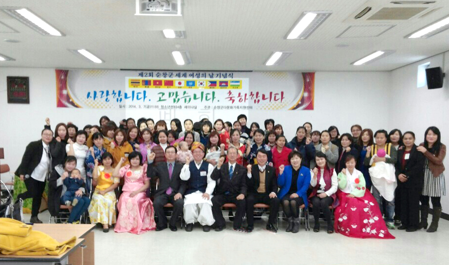 - 순창군 다문화가족지원센터(센터장 고재영)는 7일 제2회 세계여성의 날을 맞아 위촉식과 기념식, 축하공연 등 기념행사를 개최했다. 이날 행사는 결혼이주여성들과의 생활 밀착형 소통망을 구축하기 위해 국가별, 읍면별 대표 19명을 선정해 위촉장을 수여하고, 그들을 통해 애로사항과 의견을 청취.수렴하는 시간을 가졌다. -2014. 3. 7-