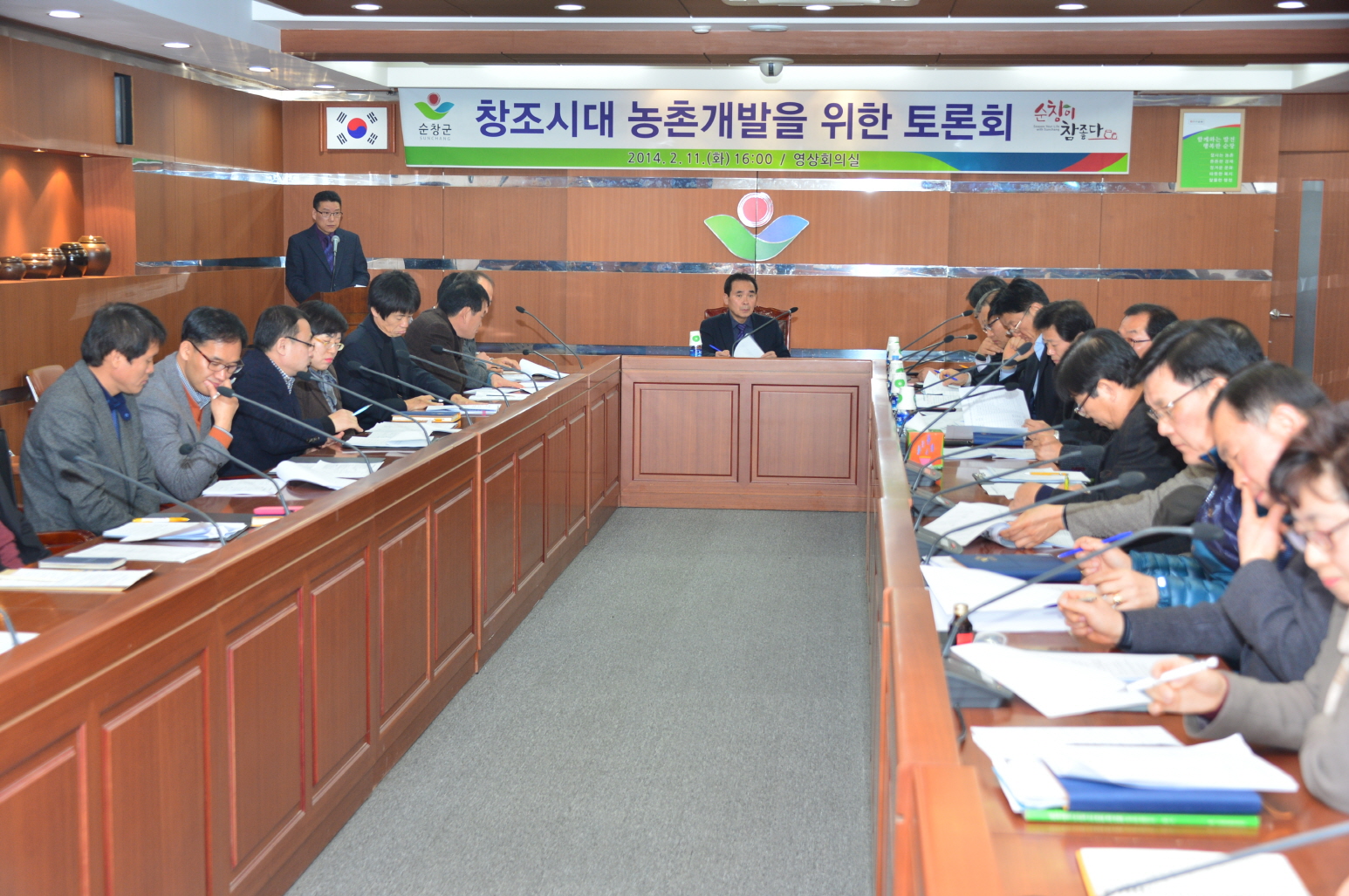 - 11일 군청 영상회의실에서 황숙주 순창군수 주재로 군 산하 공무원 100여명이 참석한 가운데 오후 4시부터 7시까지 3시간동안 격식 없이 자유스러운 분위기 속에서‘창조시대 농촌개발을 위한 토론회’를 개최했다. 이번 토론회는 100여건의 다양한 아이디어를 접수받아 살기좋고, 살고싶은, 행복한 순창 발전을 위한 창의적인 아이디어 발굴과 농촌개발정책, 클린그린순창, 음식물쓰레기 대책, 군민의 피부에 와 닿는 시책, 현재 추진중인 농촌개발 정책에 대한 문제점 도출 및 대안제시와 중앙부처에서의 주요시책 중 순창군에 접목할 사업 발굴을 위해 마련됐다. -2014, 2. 11-