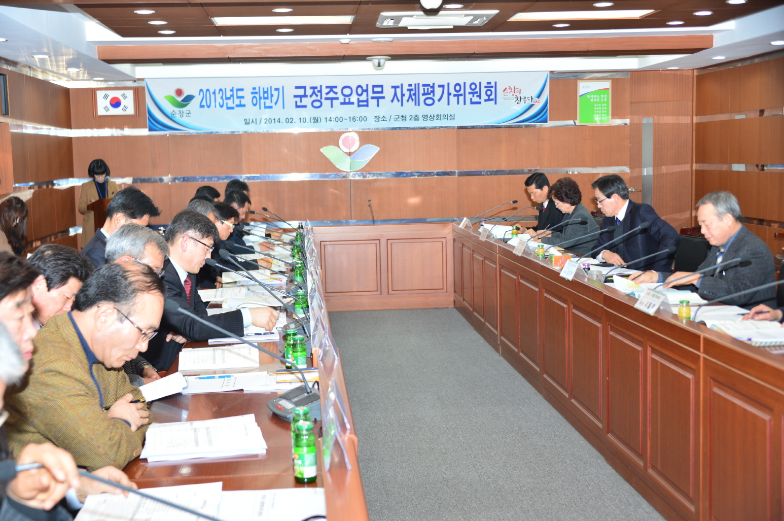 - 12일 군청 영상회의실에서 이강오 순창부군수 주재로 2013년도 하반기 자체평가 위원회를 개최했다. 지난 1년 동안 추진해 온 군정 주요업무에 대해 자체평가 결과 총 62개 사업 중 77%인 48개사업이 탁월 또는 우수한 것으로 나타났다. -2014, 2. 12-