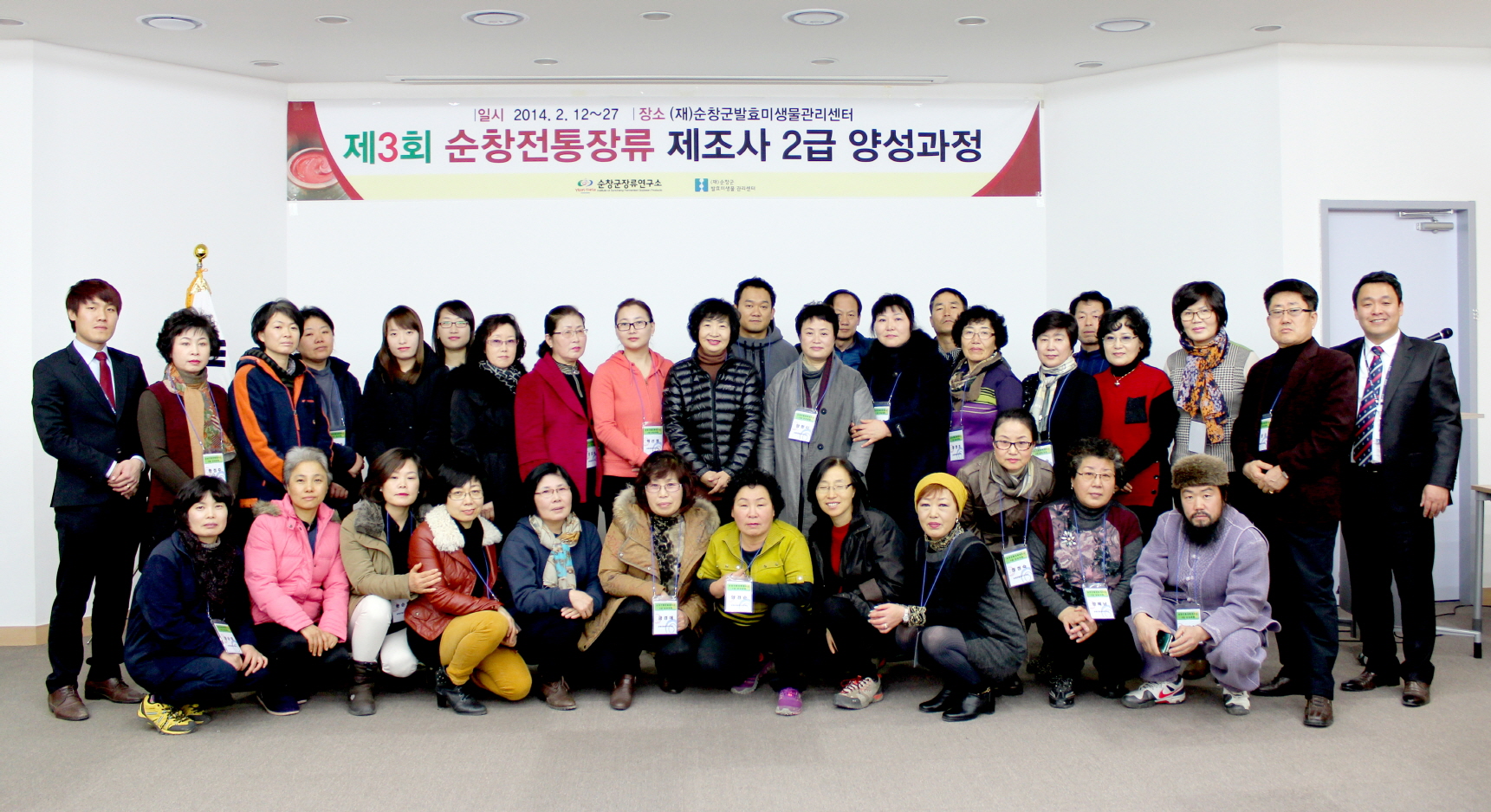 - (재)순창군발효미생물관리센터(센터장 정도연)는 12일 관계자와 교육생 등 40여명이 참석한 가운데 ‘제3기 순창전통장류제조사 2급 교육과정’ 개강식을 가졌다. ‘순창전통장류제조사’ 교육과정은 전통장류의 명맥을 유지하고 전승구조 체계를 구축하기 위해 군의 전문인력양성사업 일환으로 추진되고 있으며, 이번 과정은 모집 정원을 초과해 40명의 수강생이 교육신청을 했다. -2014, 2. 12-