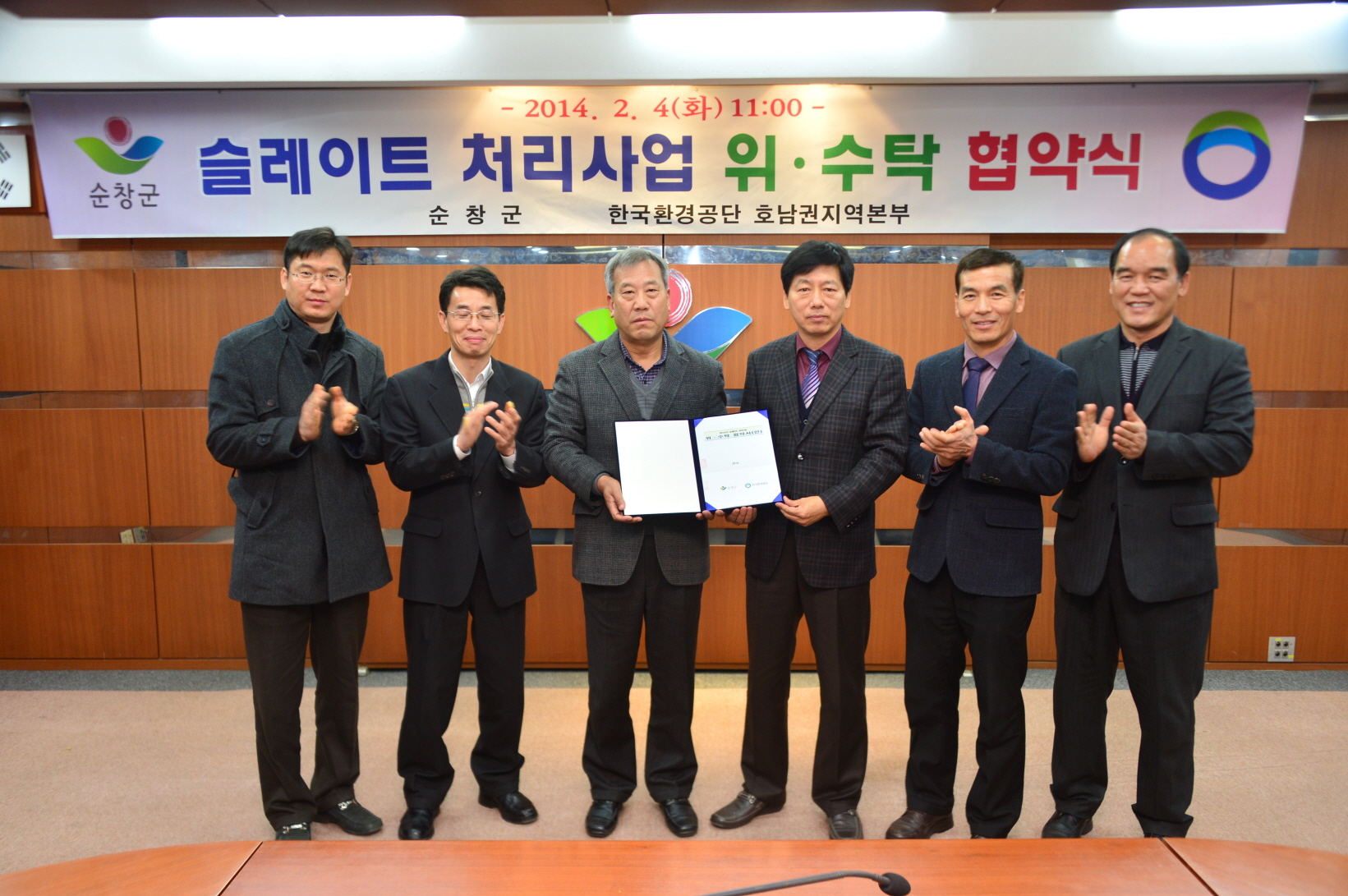 - 4일 순창군청 영상회의실에서 한국환경공단 호남권지역본부(본부장 김상인)와 슬레이트 처리사업의 원활한 추진을 위해 슬레이트 위.수탁 협약을 하였다. 순창군은 지난해보다 2500만원을 늘린 2억3100만원을 투입해 80동의 노후 슬레이트 철거 지원사업을 추진한다. 또한, 노후 슬레이트 철거 지원사업의 효율성을 높이기 위해 농어촌주택개량사업과 빈집정비사업 등과 연계 추진하여 마을환경정비에도 크게 기여할 것으로 전망된다. -2014, 2. 4-