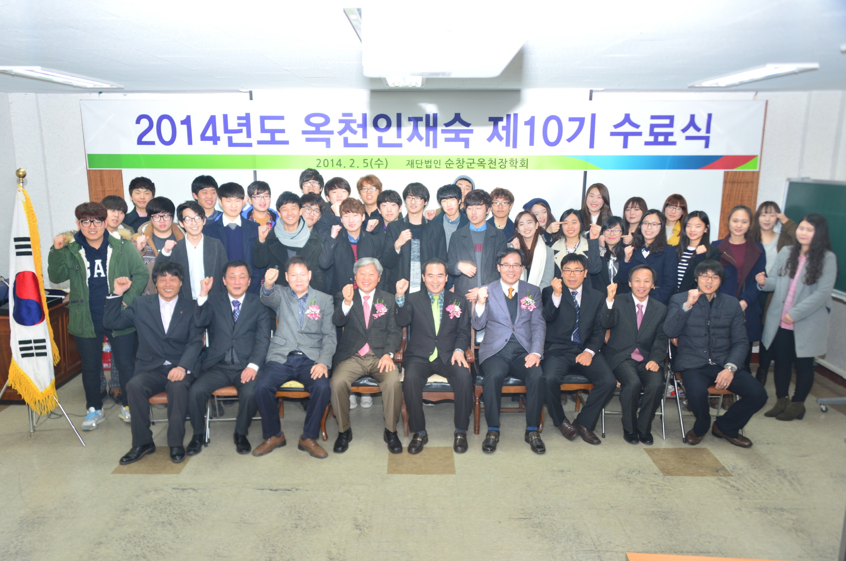 - 5일 저녁 제10기 옥천인재숙 40명의 학생들의 수료식이 옥천인재숙 회의실에서 수료생, 재학생, 학부모 등 150여명이 참석한 가운데 있었다. 이날 황숙주 이사장의 수료식 축하 인사, 재학생 송사, 수료생 답사에 이어 기념촬영과 인재숙 식당에서 학부모 수료생 모두 저녁을 함께 하는 시간을 가졌다. -2014, 2. 5-