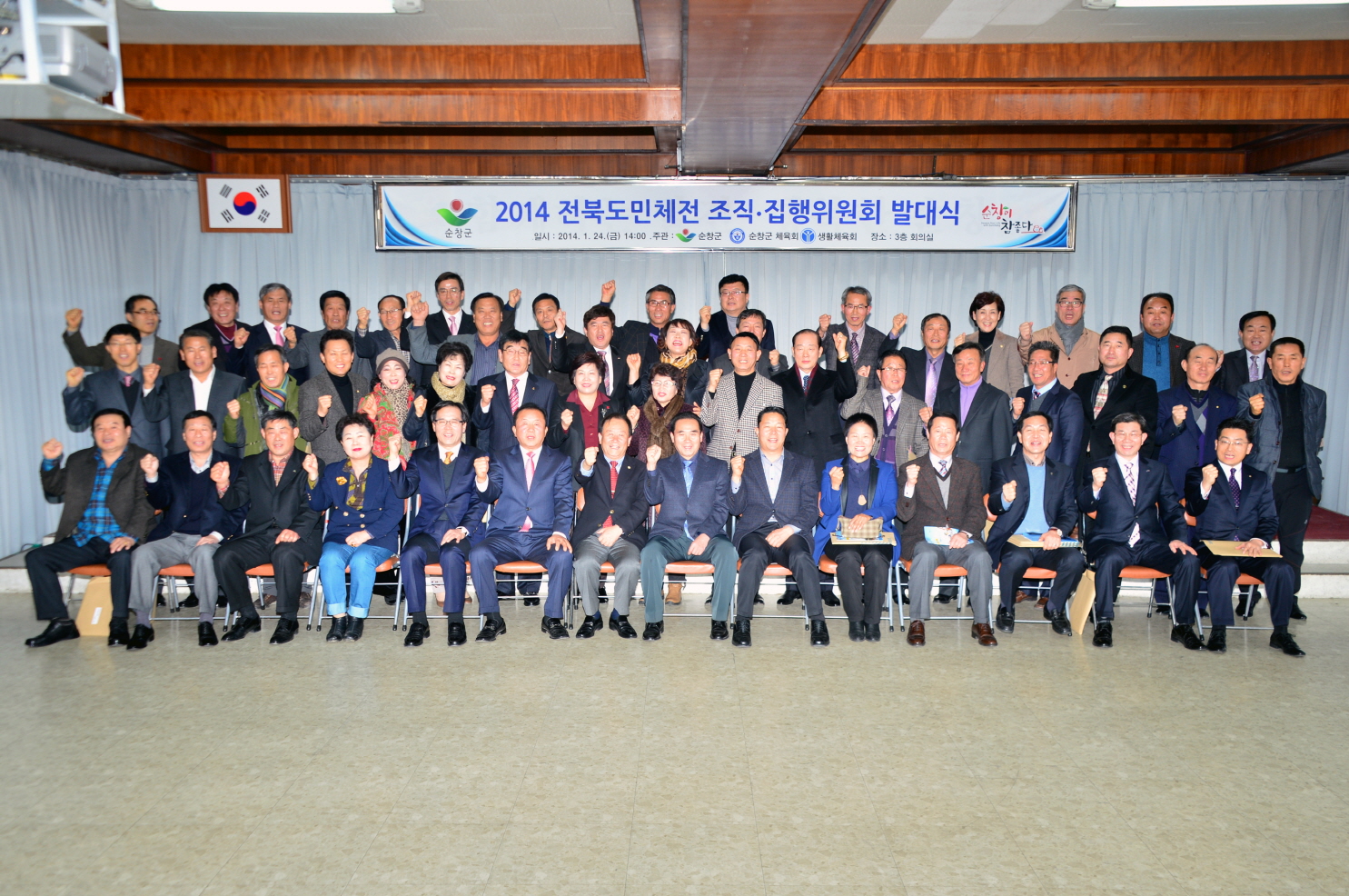- 순창군이 올해 열리는 전라북도민체육대회의 성공적 개최를 위해 24일 군청 회의실에서 황숙주 군수와 군 체육회 관계자 등 100여명이 참석한 가운데 ‘2014 전라북도민체육대회 조직위원회와 집행위원회 발대식’을 가졌다. -2014, 1. 24-