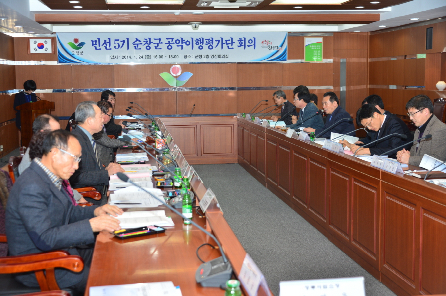 - 순창군이 군민과의 약속인 민선5기 공약사업의 성공적인 이행을 위해 24일 군청영상회의실에서 공약이행평가단 회의를 갖고 지난해 하반기 동안 추진해 온 민선5기 공약사업 전반을 다시한번 점검하고 이행상황을 평가하는 시간을 가졌다. -2014, 1. 27-