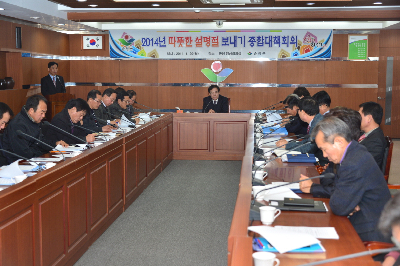 - 순창군이 다가오는 설명절을 앞두고 공공기관이 솔선수범하여 나눔 문화 확산과 소외계층에 대한 이웃사랑을 실천하기 위해 설명절 종합대책을 마련했다. 20일 군청 영상회의실에서 실과소원장과 읍면장, 문화원장, 자원봉사센터장, 여성자원봉사센터장, 여성단체협의회장 등 35명이 참석한 가운데 따뜻한 설명절 보내기 대책회의를 개최했다. 이날 군․읍면을 비롯해 관내 유관기관과 사회단체, 기업체 등의 적극 동참으로 장애인, 노인 등 사회복지생활시설과 독거노인 소년소녀가정세대 등 저소득계층에게 위문이나 자원봉사활동을 실시하기 위한 상호 협력방안을 모색했다. 군은 또 각 실과소원 직원들이 설명절까지 관내 사회복지시설 1개소씩을 방문해 청소나 식사배식 목욕 등 자원봉사활동을 펼치기로 했다. -2014, 1. 21-
