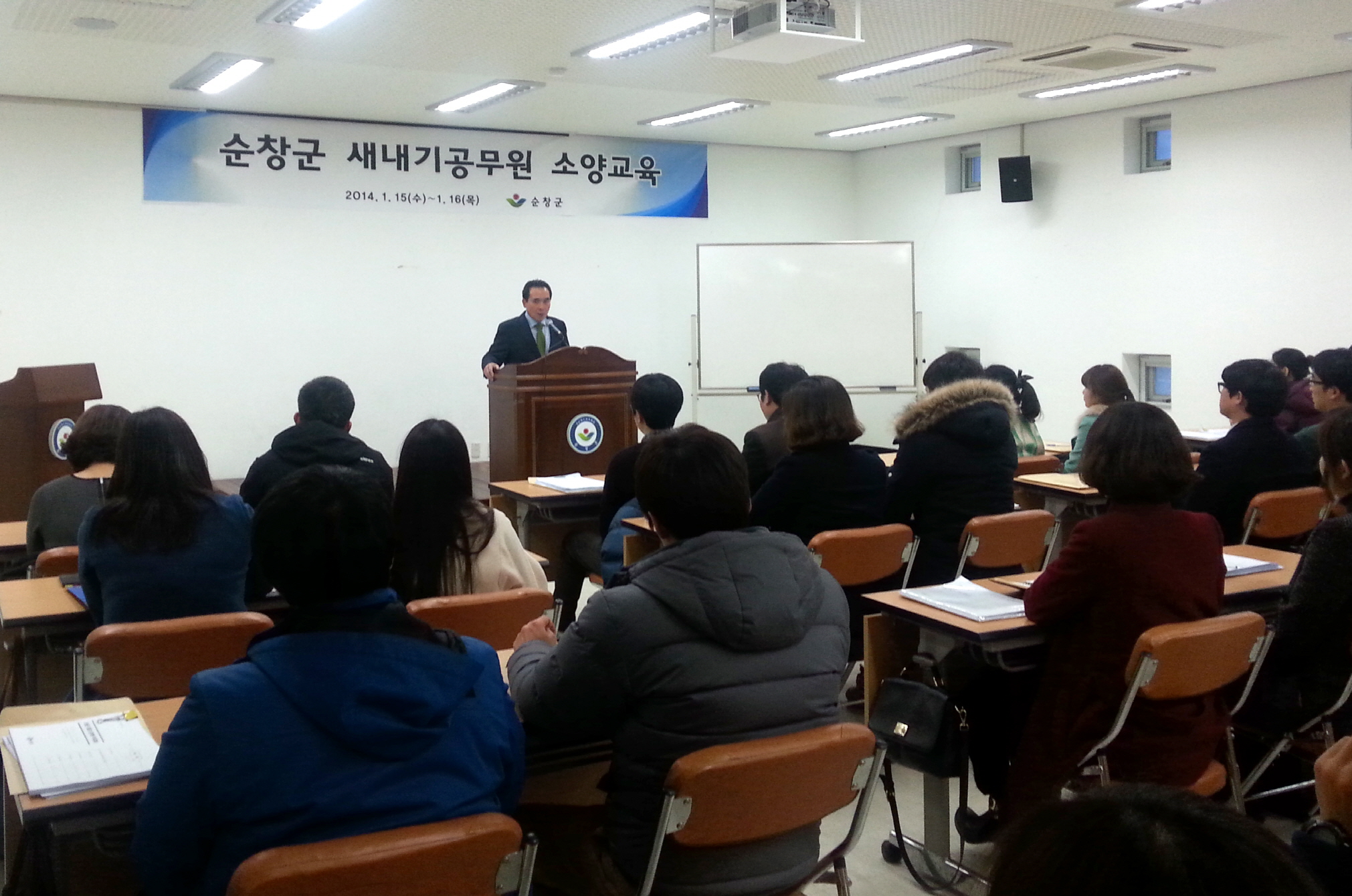 - 순창군은 15일과 16일 이틀간 2012년 말과 2013년 말에 임용된 신규 공무원 37명을 대상으로 청소년센터에서 소양교육과 황숙주 군수의 특강 시간을 가졌다. 이번 교육은 기획, 예산, 감사, 인사, 회계 및 문서 작성 방법을 쉽게 이해할 수 있도록 각 업무 담당들이 사례를 들어가며 설명하고, 장류특구와 건강장수연구소, 쓰레기매립장과 하수처리장 등 시설을 견학했다. -2014, 1. 17 -