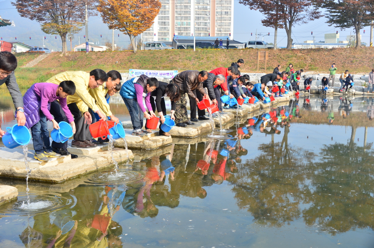 - 순창군은 자연환경개발과 어류 포획 등으로 고갈되어가는 토종어류 보호와 섬진강 생태계 복원에 기여하고자 5일 이강오 순창부군수를 비롯한 학생, 지역주민, 단체, 공무원 등 100여명이 참석한 가운데 붕어 등 17만마리를 섬진강에 방류했다. 이날 군청 앞 경천과 유등 섬진강변 2곳에서 붕어 6만2천마리, 잉어 6만2천마리, 동자개 4만6천마리등 17만마리 방류행사를 가졌다. -2013. 11. 5-