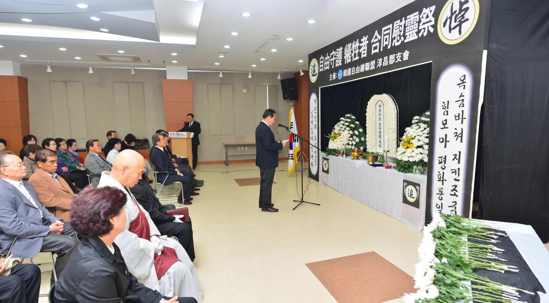 - 한국자유총연맹 순창군지회(회장 설동찬)는 7일 문화의 집에서 황숙주 군수,유관기관 단체장, 희생자 유가족, 군민 등 100여명이 참석한 가운데 자유수호희생자 합동위령제를 가졌다. 이날 풍남교회 기옥종 목사의 성경봉독과 강천산 법연스님의 독경, 황숙주 군수 추도사, 조시낭독, 헌화.분향 순으로 진행됐다. -2013. 11. 7-